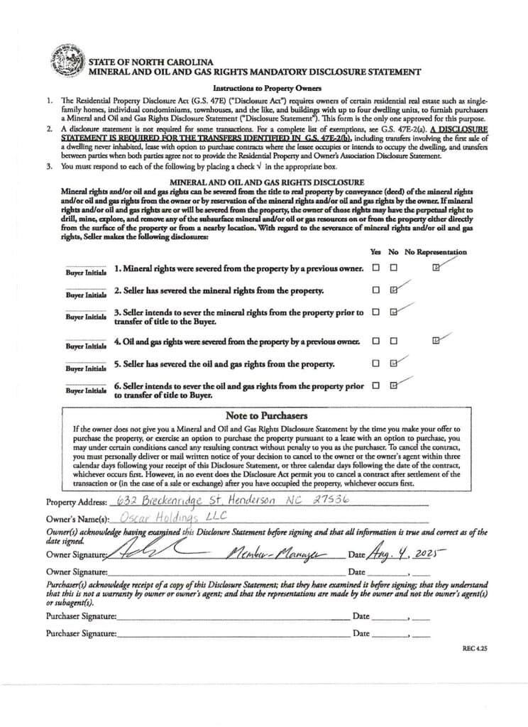 Recent updates completed in 2021 and 2025 help minimize near-term maintenance, creating a low-maintenance, high-efficiency rental opportunity. Situated on a quiet, tree-lined street, the property provides tenants the appeal of single-family living with manageable expenses–supporting stable occupancy and consistent cash flow. With Henderson’s continued rental demand and proximity to the Raleigh-Durham region, this value-driven opportunity offers both immediate returns and long-term upside.