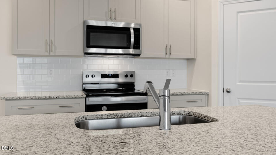 Upon entering the home, you’ll be greeted by an inviting foyer that leads directly into the heart of the home. This open plan features a living room, dining room, and well-appointed kitchen. The kitchen is equipped with a corner walk-in pantry, stainless steel appliances, and a large island with a breakfast bar, making it perfect for both cooking and casual dining.