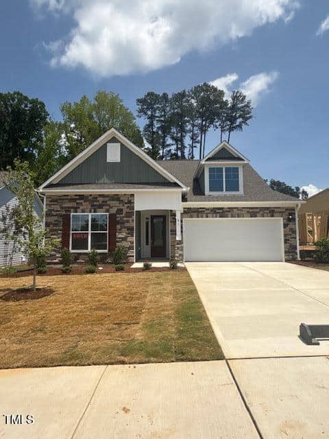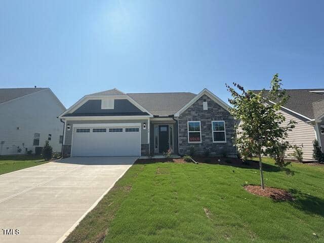 Mayfair ranch presale, 3 beds, 2 baths, open floor plan, fireplace, designer kitchen, covered porch, LVP flooring, upgraded trim, tiled walk-in shower, quartz and granite countertops.