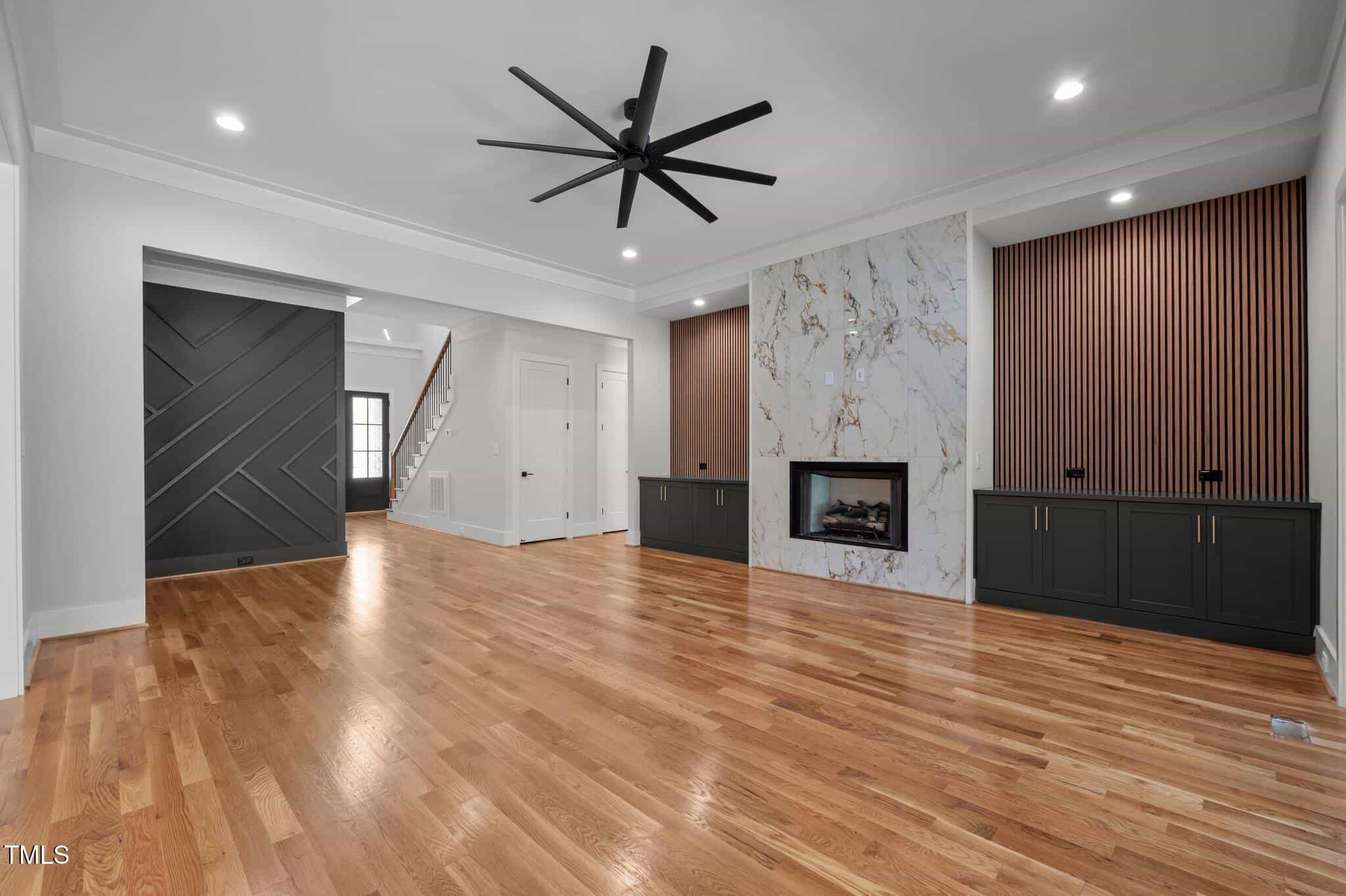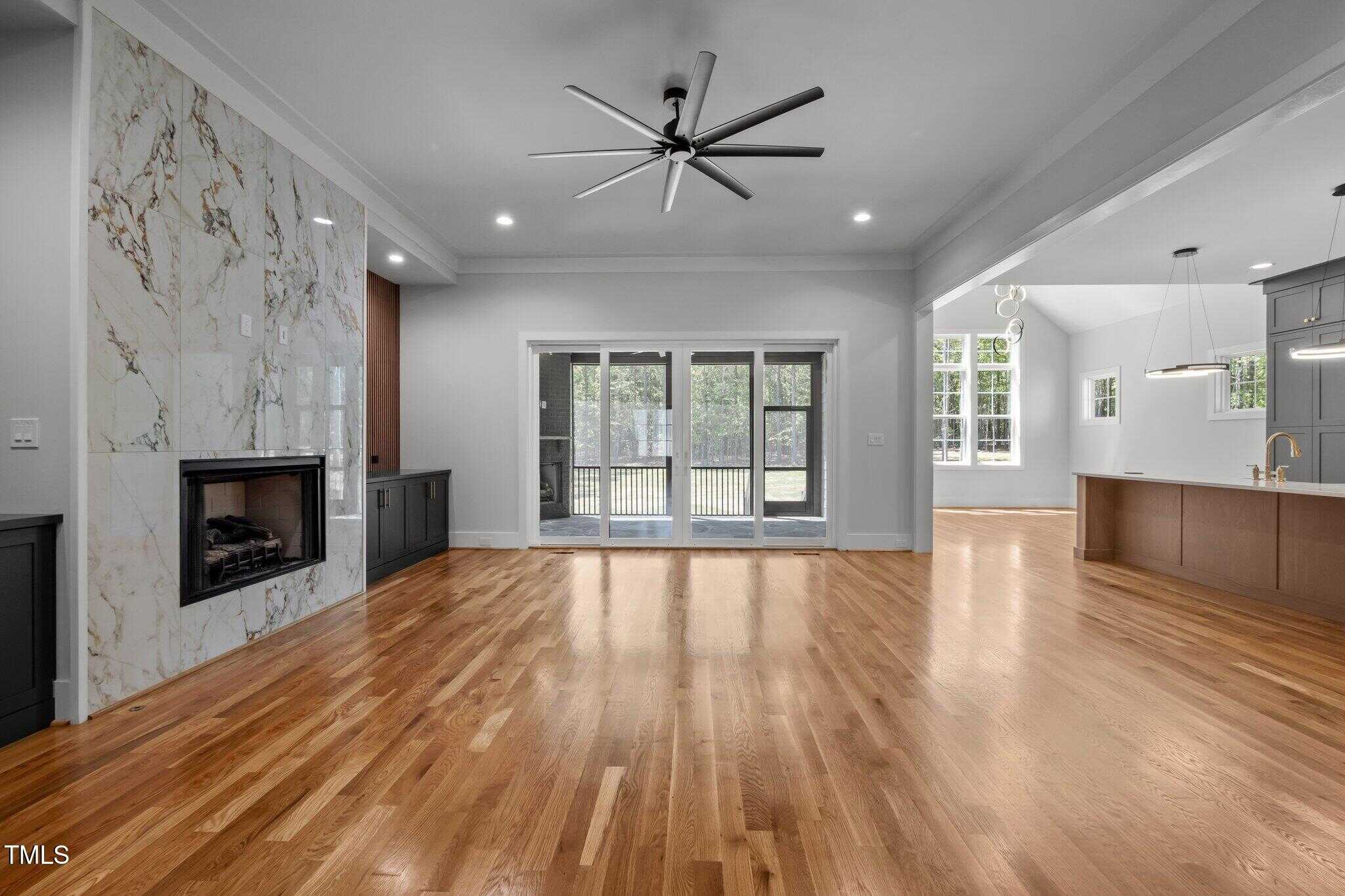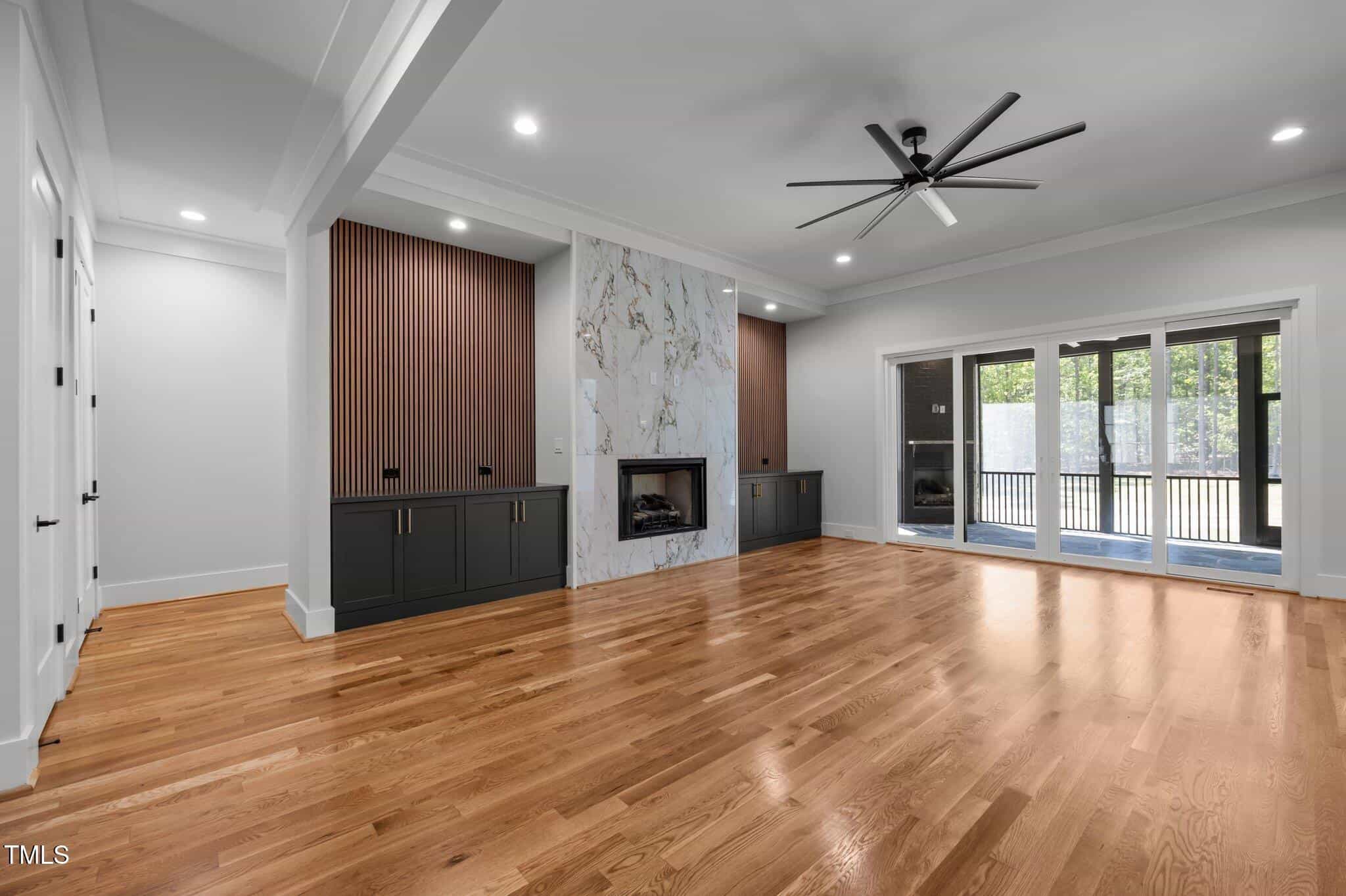 Family Room: Accent Beam Ceiling, Custom Surround Fireplace w/Flanking Built ins & 12′ Slider to Screened Porch w/Outdoor Fireplace! Upstairs Office/Study, Large Recreational Room w/Unfinished Storage Access & 2 Secondary Suites w/Private Bath & Walk in Closets!