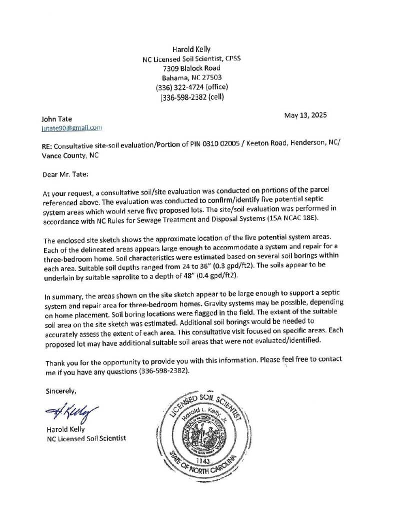 6.2 acres for sale near Kerr Lake in Vance Co. Lot 7 is open with a year-round creek as a border. Ideal property for recreation, farming and horses in a rural community. Island Creek public boat ramp is 5 minutes away with all the boating and fishing opportunities that Kerr Lake has to offer. Access is via a 60ft easement on a gravel road. Soil report shows suitable soil for a conventional septic system. Convenient to Henderson, Oxford, Hwy I-85 and Kerr Lake. Broker has interest.