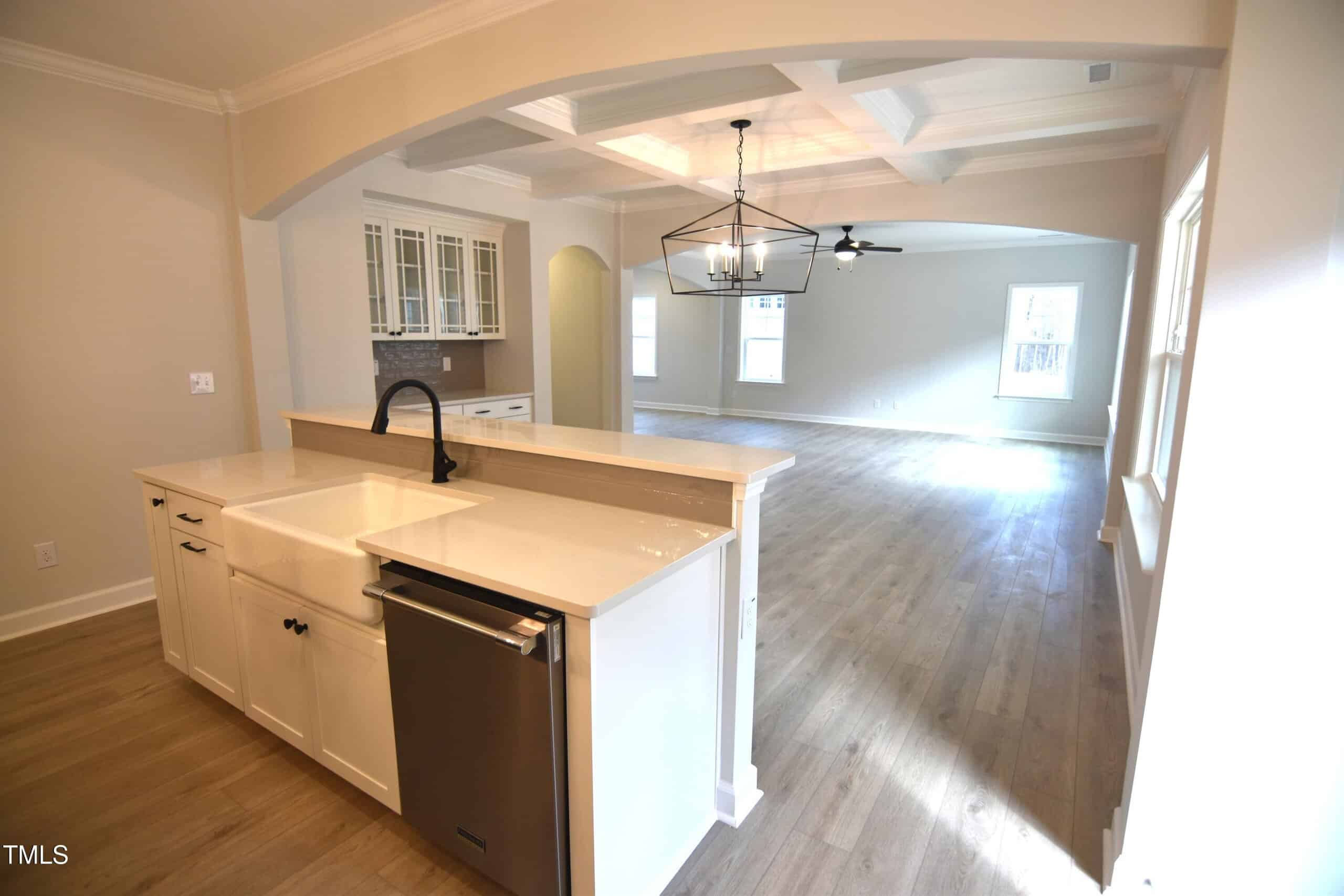 Dining Room: Arched Entryways, Coffered Ceiling, Crown & Butler’s Pantry!