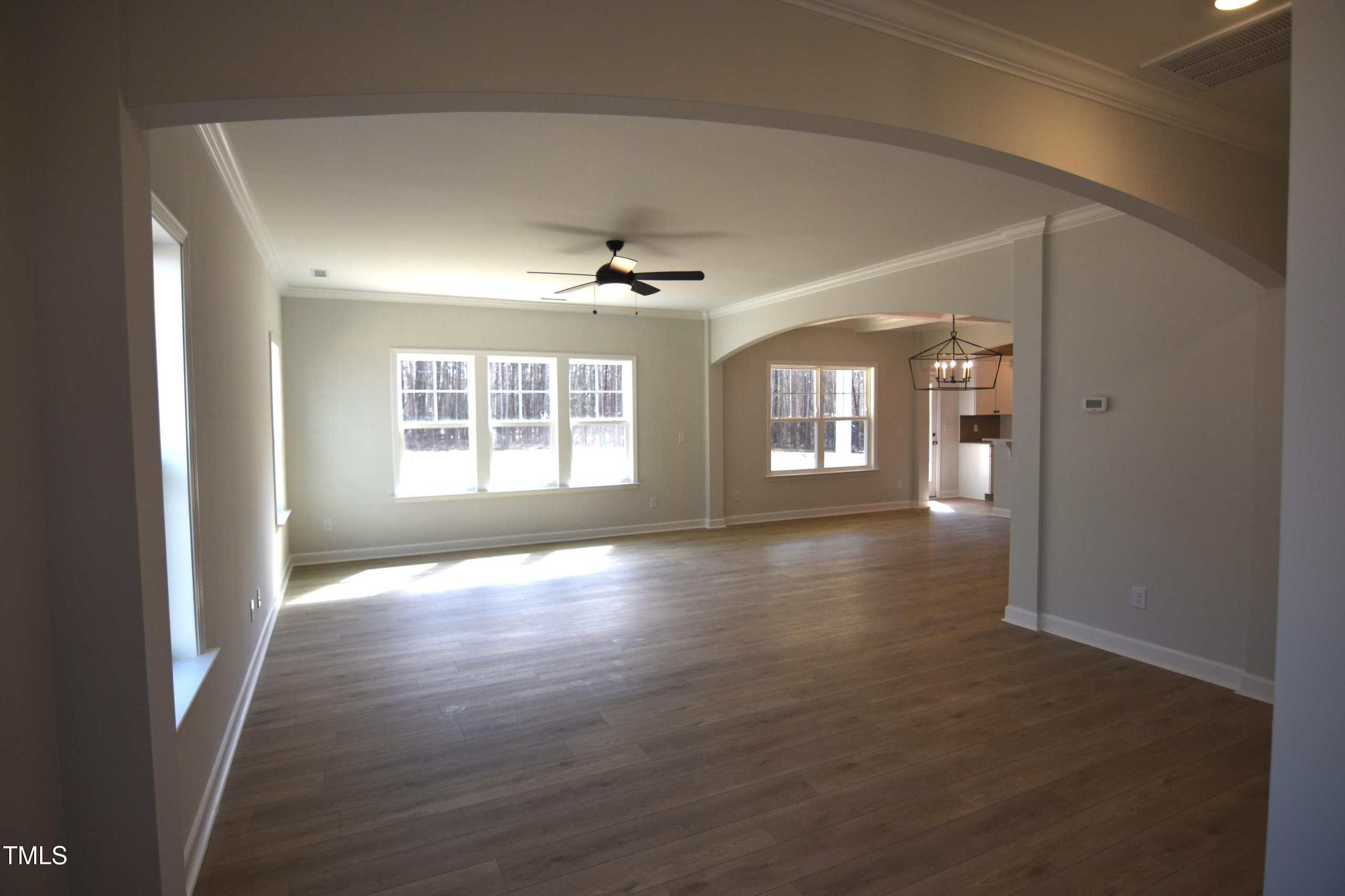 Great Room: w/Crown Molding, Abundant Natural Light & Fan!