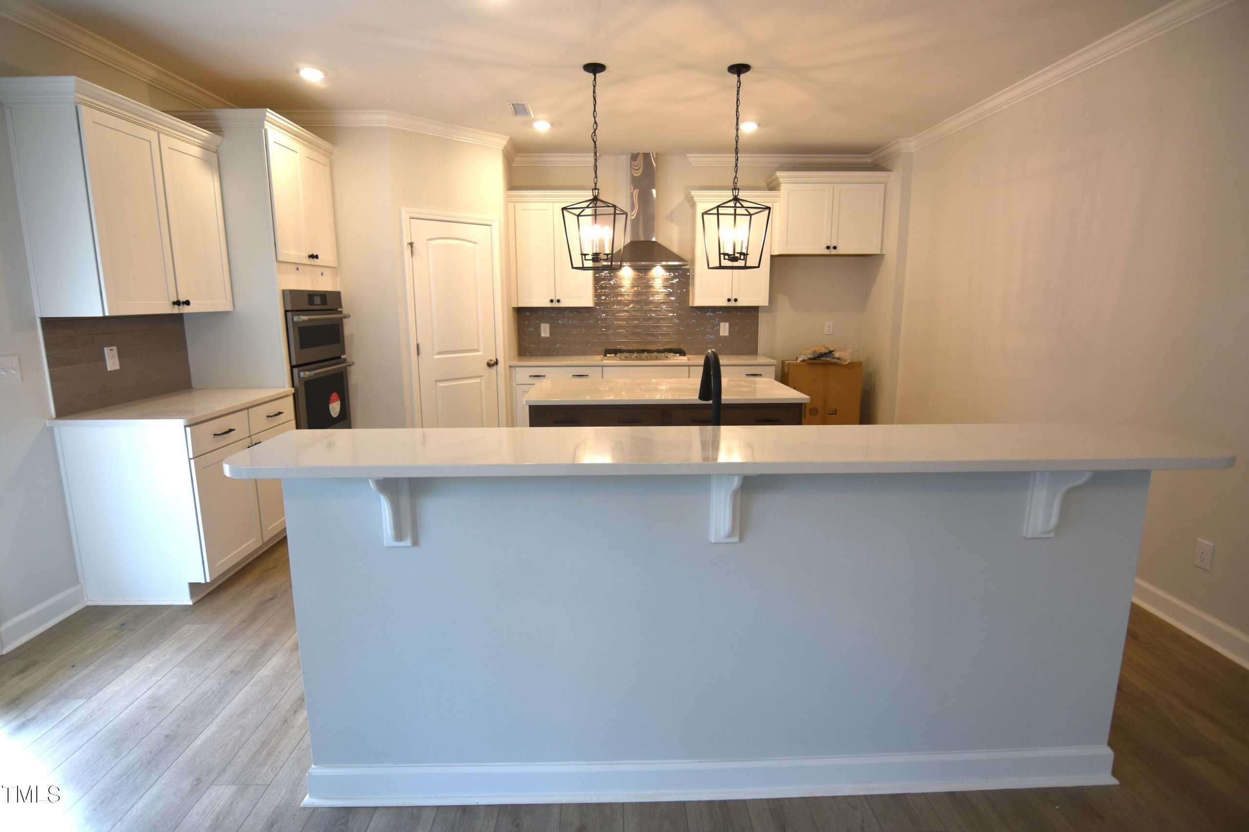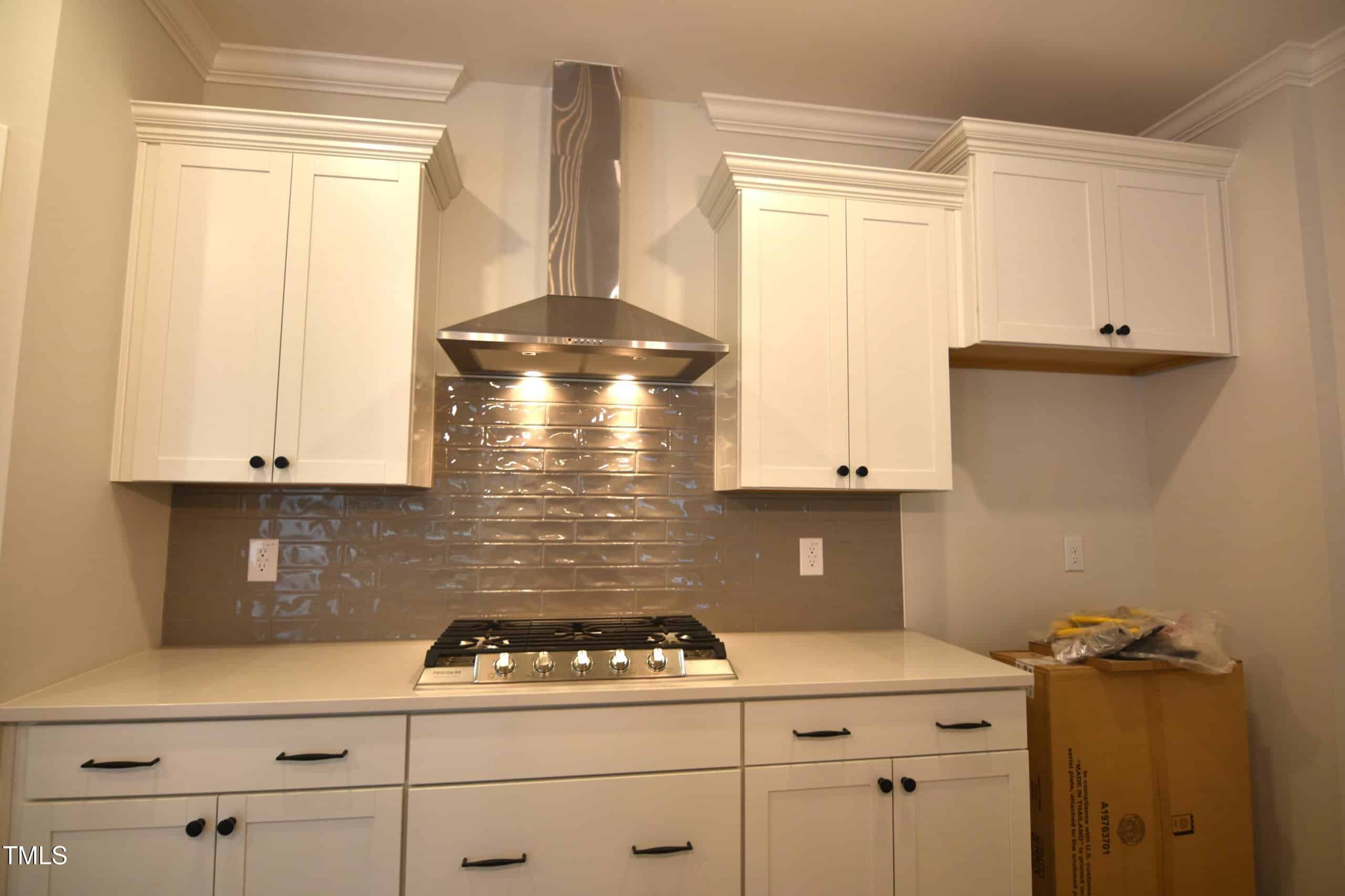 Kitchen: Gas Cooktop & Built-in Oven/Microwave Combo, Custom Cabinets w/Soft Close Feature, Island, ”Miami Vena” Quartz Countertops, Stylish Tile Backsplash, Crown & Pendant Lights!