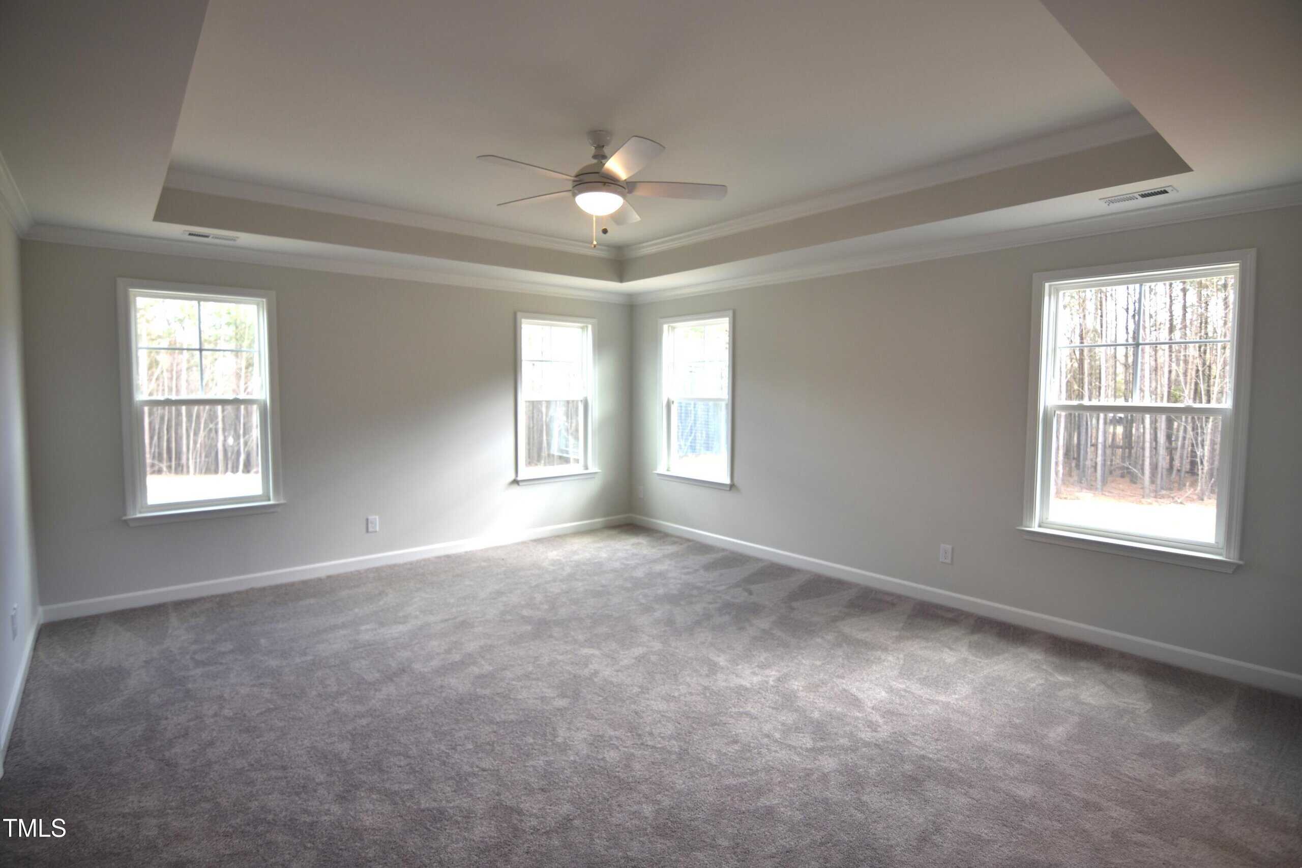 Primary Bed: Tray Ceiling w/Crown, Lots of Windows, Plush Carpet, Huge WIC & Ceiling Fan!