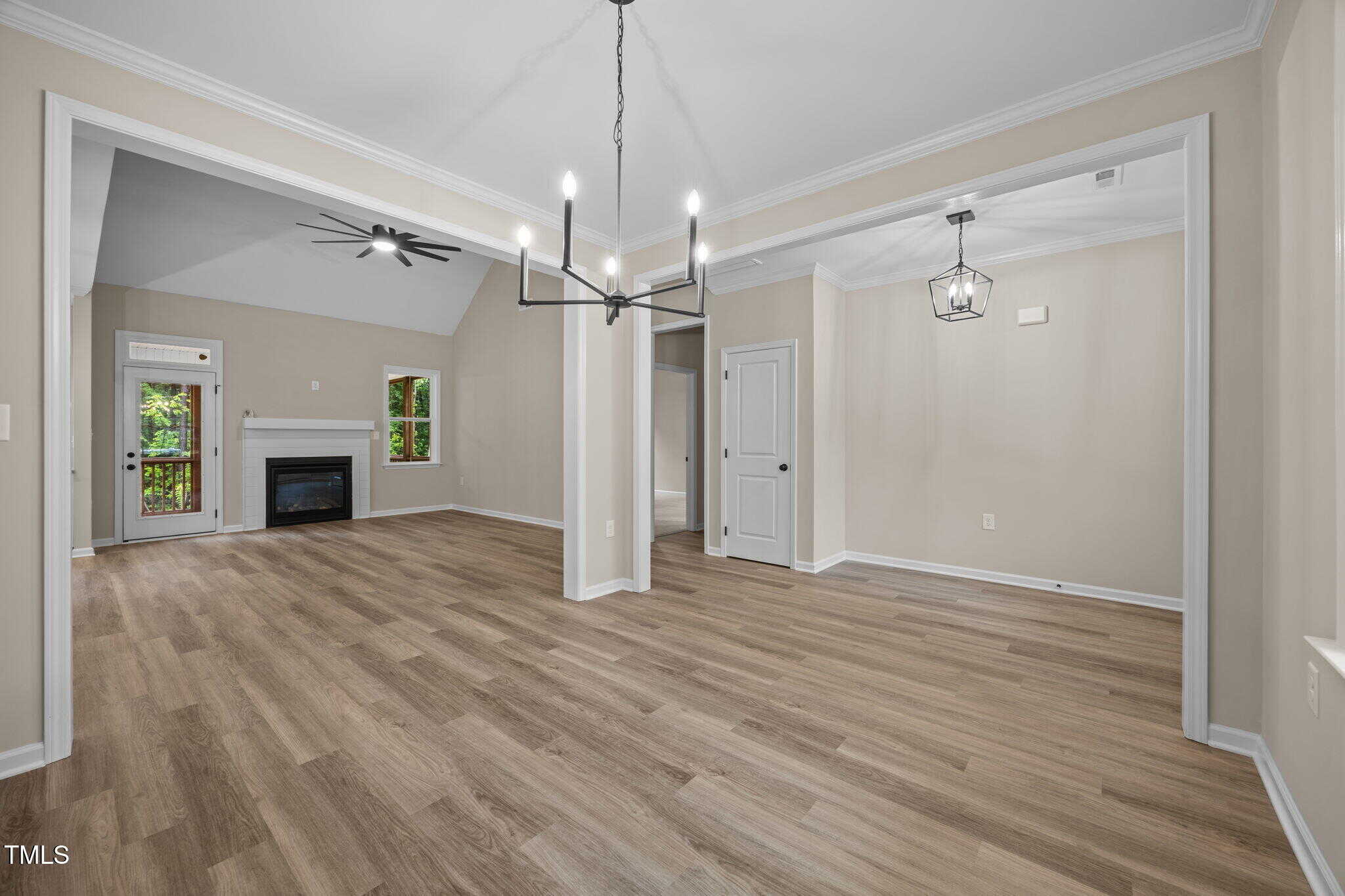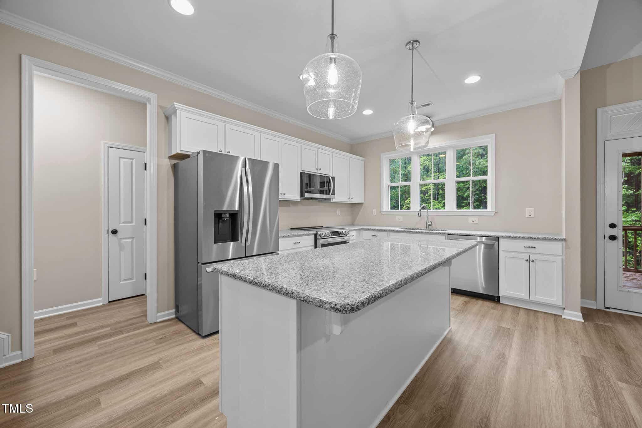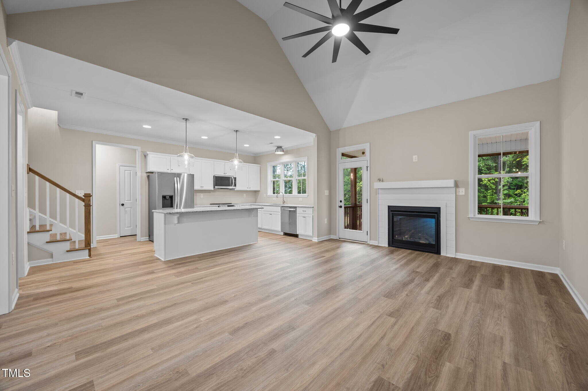 The open layout includes a cozy family room with a gas log fireplace, a dining area, and a spacious kitchen that’s great for everyday living or entertaining. There is an LG Refrigerator, a dishwasher, stove, and microwave! You’ll find durable LVT flooring throughout the main areas and soft carpet in the two secondary bedrooms.
