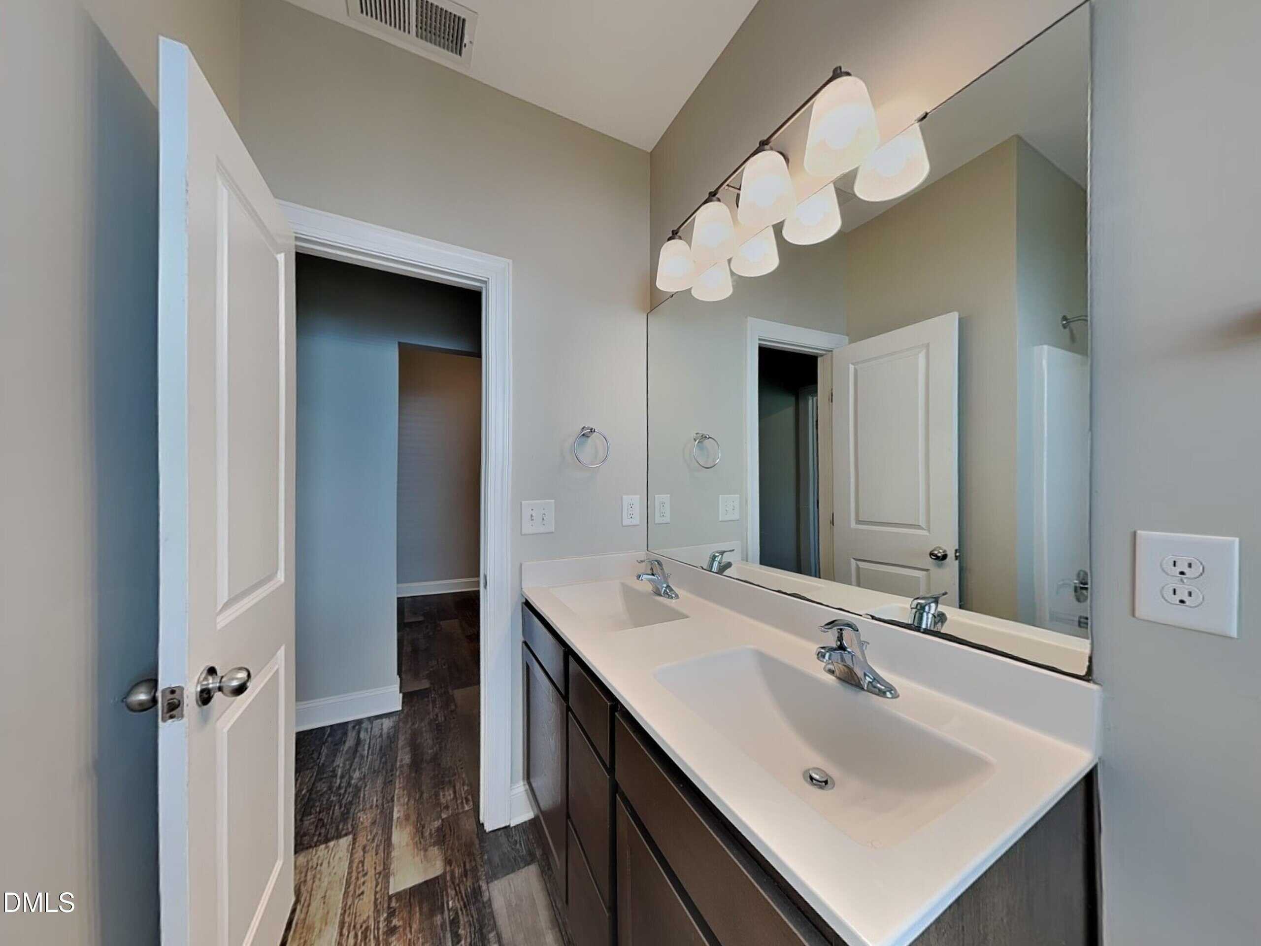 Downstairs you will also find the primary suite featuring double sink vanity and garden tub.