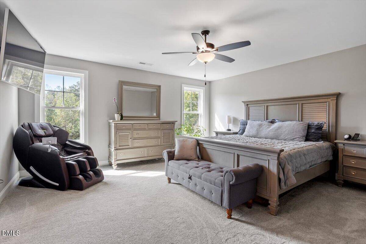 Step outside to the deck and patio overlooking the fully fenced yard, perfect for pets and outdoor gatherings. Large Primary Bedroom with 2 walk-in closets. Amazing Spa Like Primary Bathroom.