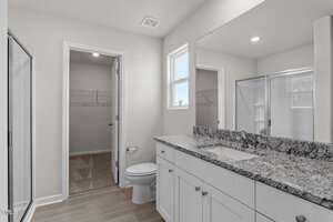 The master is tucked away on the second floor of the home with plenty of natural light and a fabulous master bath. In the master bath you will find a large vanity, great storage and an impressive walk-in closet.