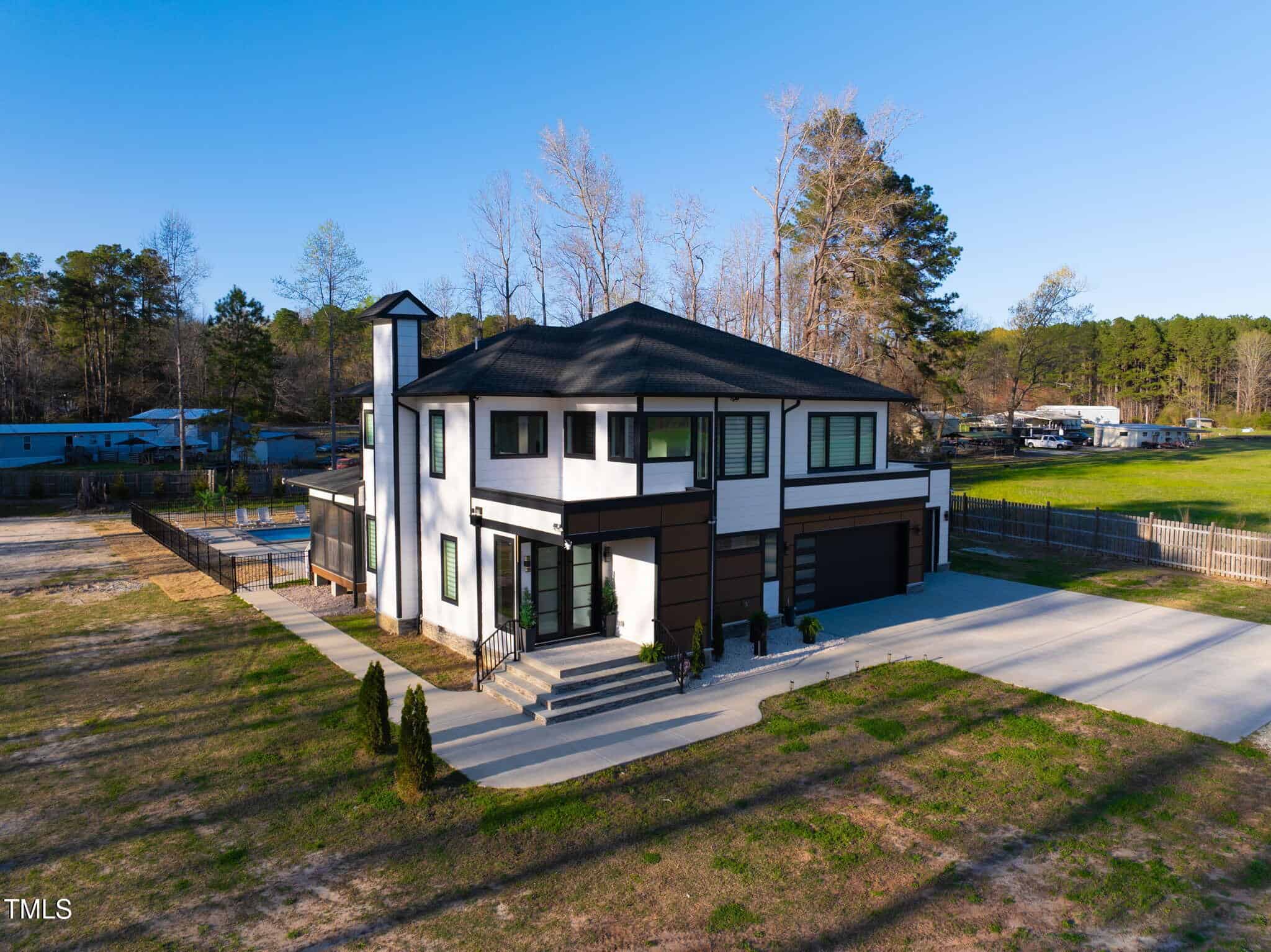 Discover the perfect blend of modern design and rural tranquility with this stunning custom-built home, set on 5.01 acres of lush land. With an expansive layout, modern finishes, luxurious finishes, and plenty of space to grow, this home offers everything you need for peaceful living, with the convenience of being just a short drive from the city. Key Features: * 5.01 Acres of Land: Enjoy privacy and space, with three adjacent lots included in the sale providing even more room for future expansion or enjoyment. * Modern Custom Design: Clean lines and high-end finishes throughout. * Spacious Open Floor Plan: Perfect for entertaining and gatherings. * Quartz Kitchen Countertops: Sleek, stylish, and durable for your cooking needs. *Enjoy a fully equipped kitchen with a built-in oven and microwave, along with a high-end modern refrigerator. * The bathrooms boast luxurious glass door showers and freestanding tub that offers both soothing bubbles and vibration for ultimate relaxation. * Quartz Stairs with Glass Rails: A striking feature that adds a contemporary touch to your entryway. * Modern Sliding Doors: Seamlessly connect your indoor and outdoor spaces. * Fenced Pool: Relax in your private backyard oasis, with a fully fenced pool area. * Large Garages: Ample space for cars, storage, or even a workshop. * Whole House Water Filter: Enjoy clean, purified water throughout the home. * Spacious Screen Porch: Ideal for relaxing or entertaining while enjoying the outdoors. * Additional Storage: Plenty of space for all your belongings with an outdoor storage. *This home seamlessly blends style and functionality, offering the perfect retreat for those who appreciate modern living. Whether you’re looking for a private retreat or a space to host, this modern home with expansive acreage offers it all. Schedule your showing today!