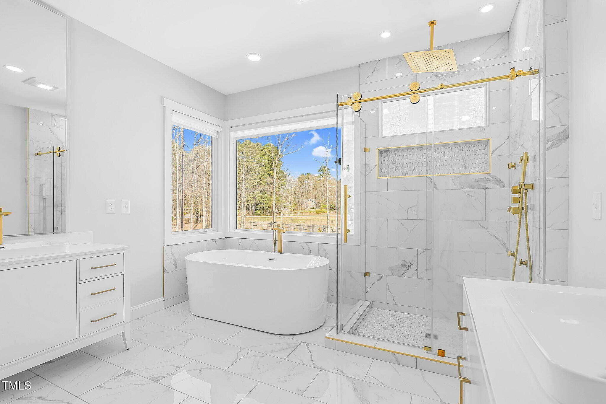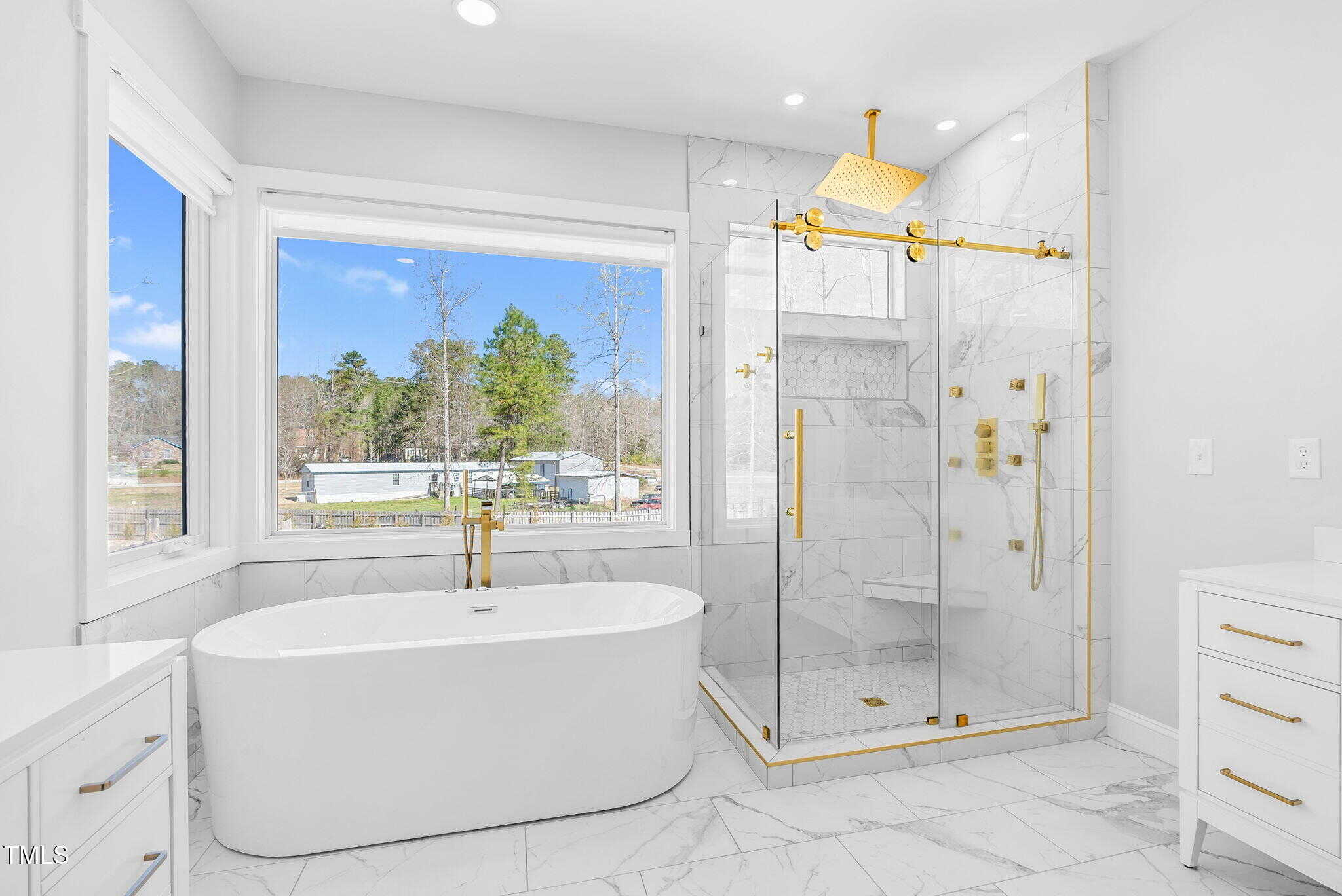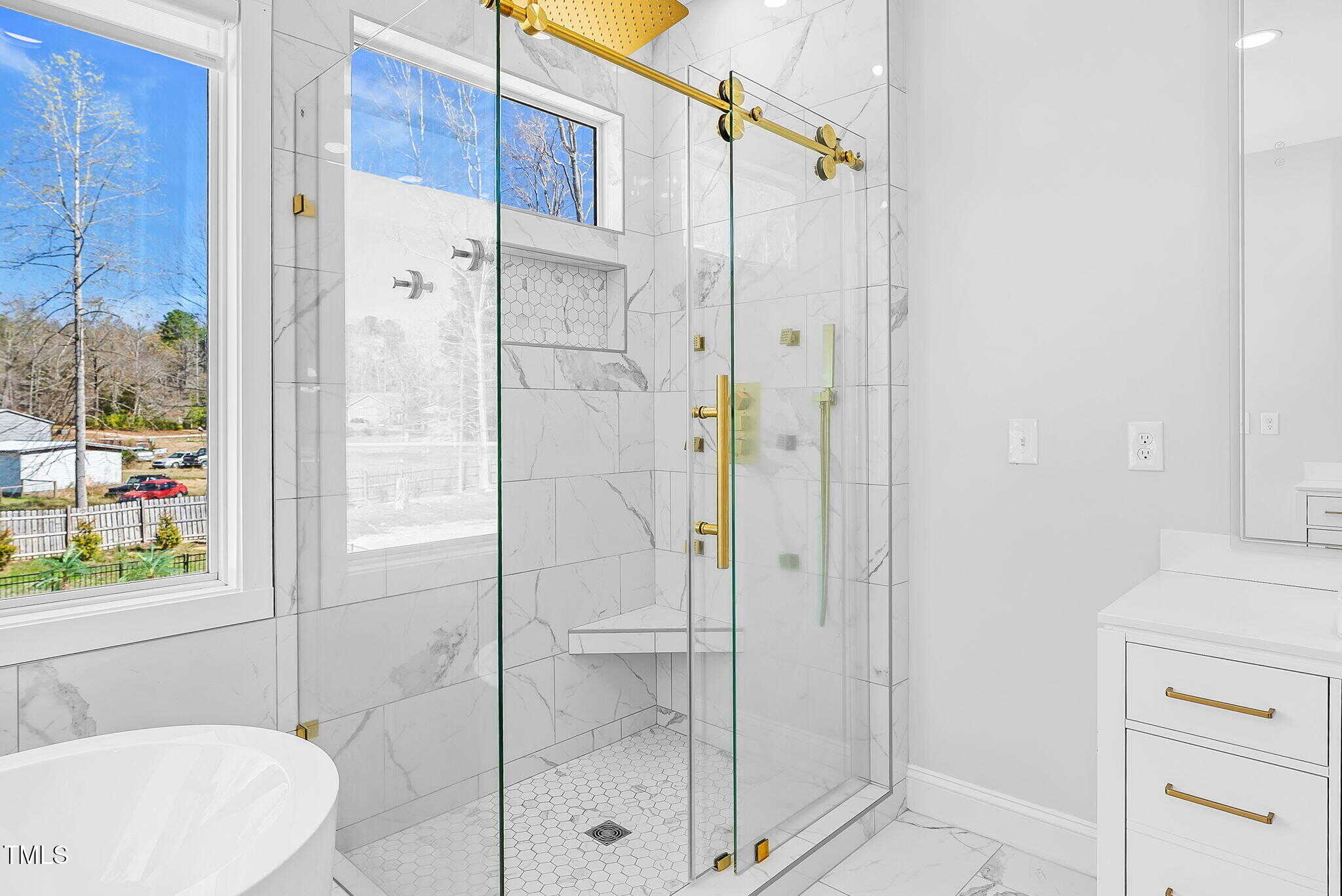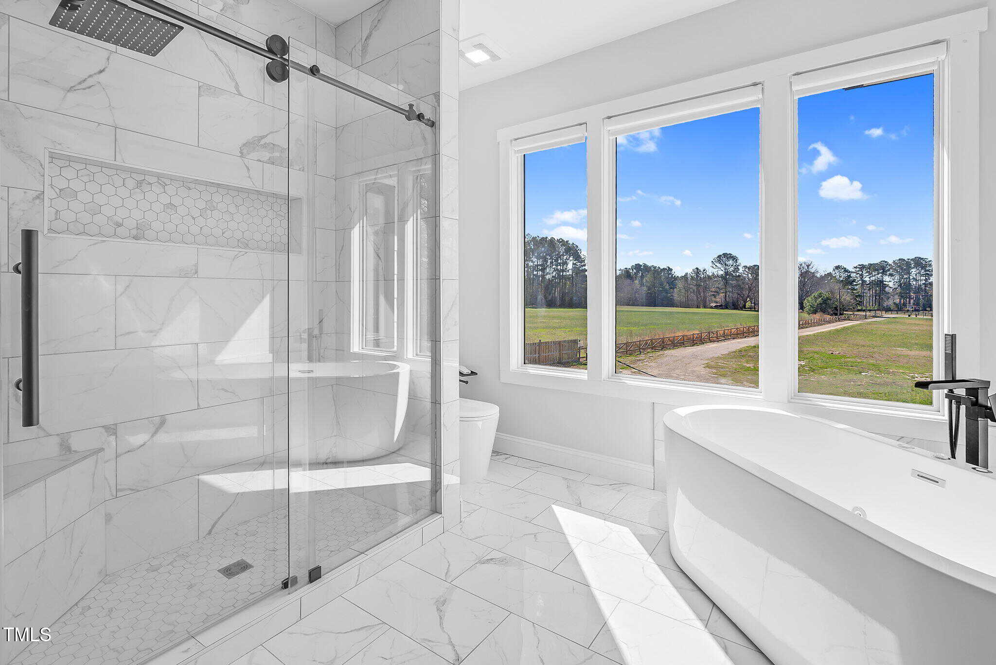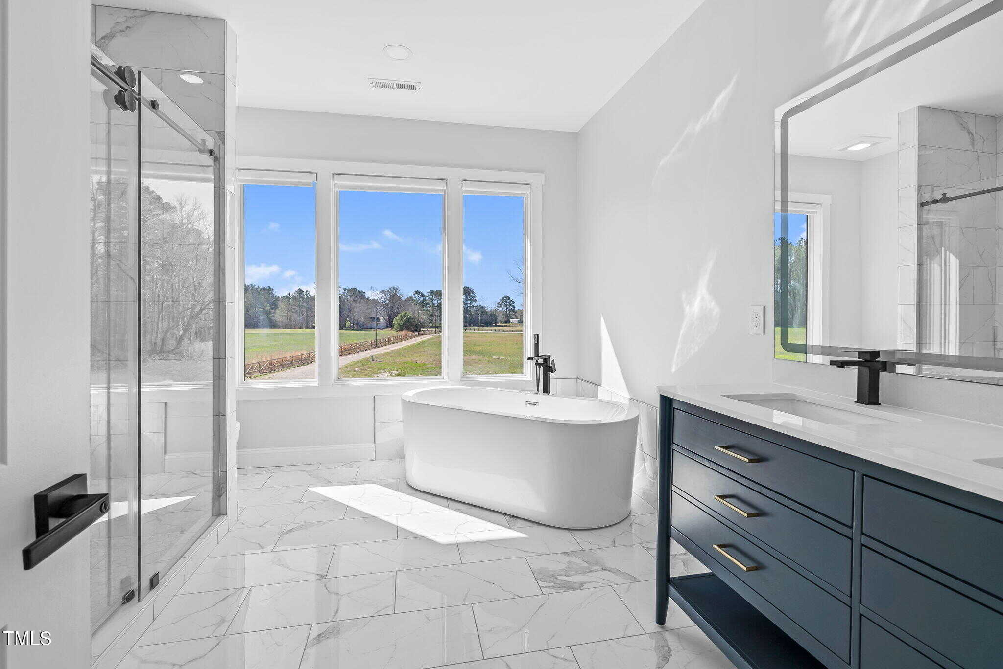 * The bathrooms boast luxurious glass door showers and freestanding tub that offers both soothing bubbles and vibration for ultimate relaxation.