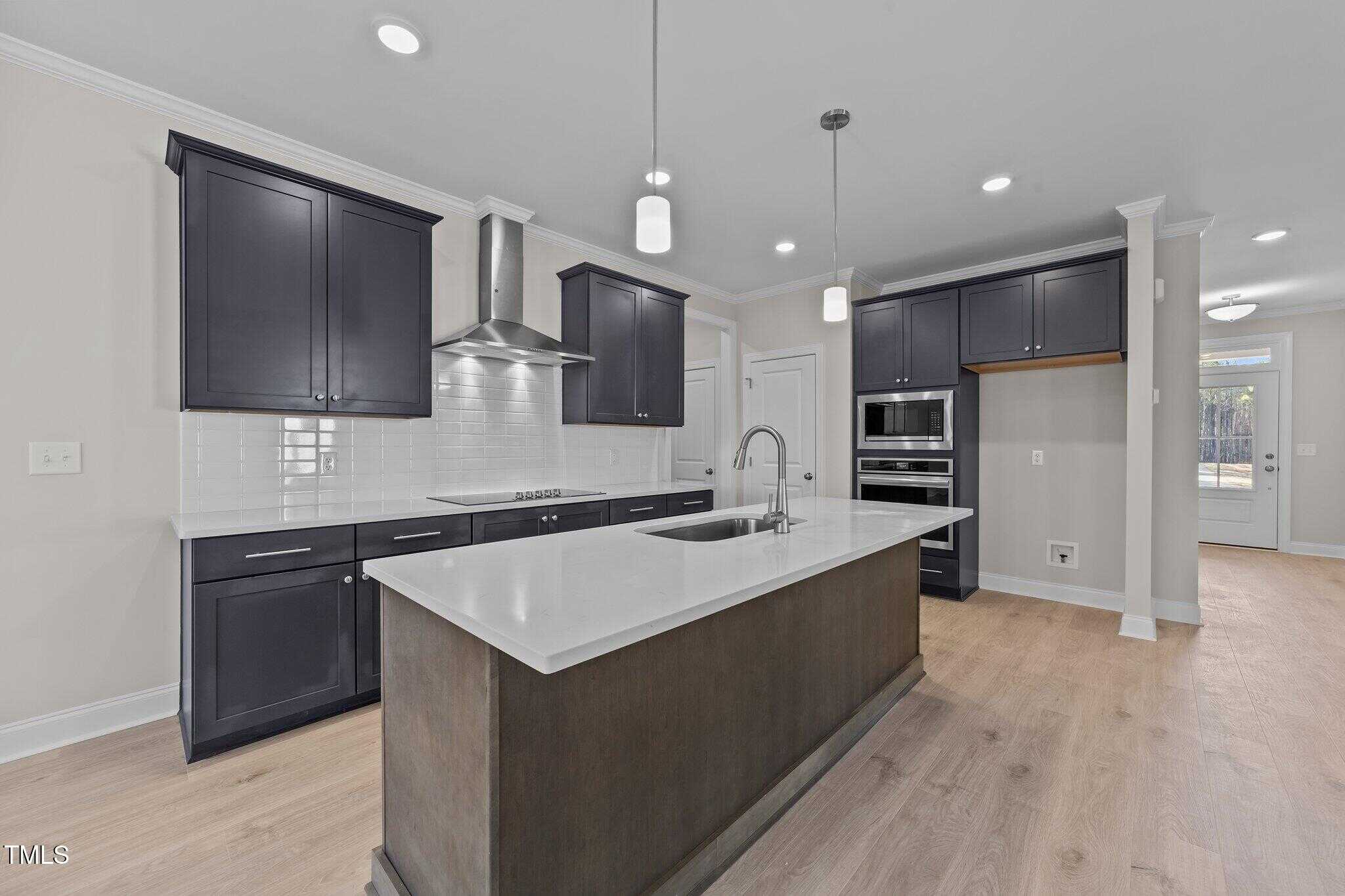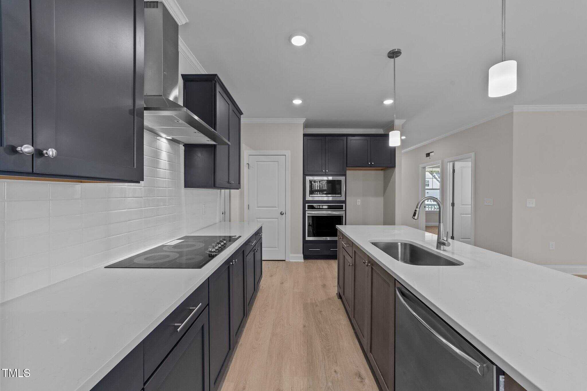 Kitchen: Offers ”Miami Vena” Quartz Coutertops, Custom Two Toned Cabinets w/Soft Close, Stainless Steel Appls Incl Electric Cooktop & Wall Oven, White Glossy Subway Tile Backsplash, Center Island w/Breakfast Bar & SS Single Bowl Sink, Accent Pendant Lights & Pantry! Opens to Casual Dining w/Access to Rear Covered Porch!