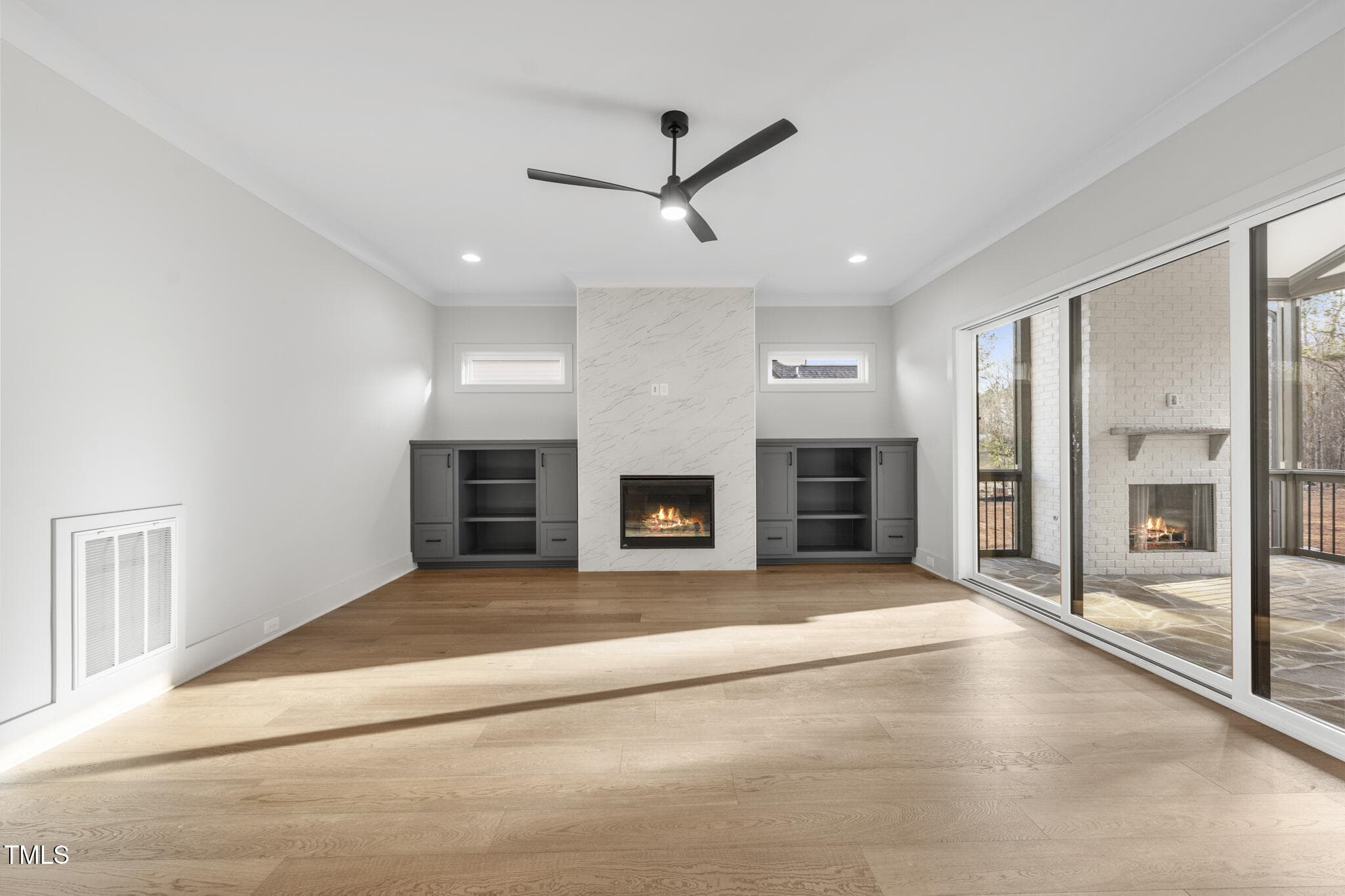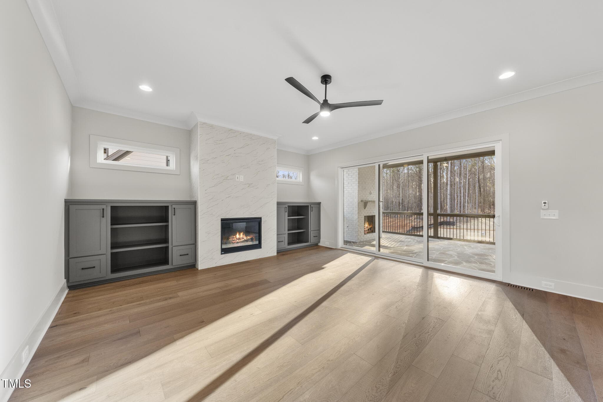 Spacious Primary Suite: Accent Beam Ceiling, HWDs & Primary Bath w/Zero Entry Wet Room w/Full Wall Tile, Spa Style Shower & Freestanding Tub, Oversized Dual Vanity w/Linear Sconce Vanity Lights & WIC w/Laundry Access. Family Room: Quartz to Ceiling Surround Fireplace w/Flanking Built in Cabinets & Sliders to Vaulted Screened Porch w/Fireplace! 1st Flr Guest Suite: Shared Bath w/Zero Entry Shwr! Upstairs Recreational Room w/Full Bath Access, Two Secondary Suites w/Private Baths & Unfinished Walk in Storage Area!