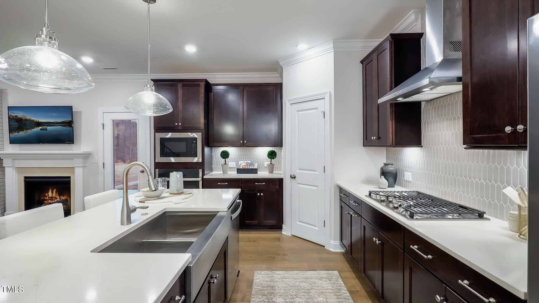 The heart of the home is the gourmet kitchen, beautifully appointed with quartz countertops, 42-inch cabinetry, a large center island, and stainless steel appliancesโideal for both everyday living and entertaining. Throughout the home, thoughtful upgrades like a full oak tread staircase and oversized glazed porcelain tile in the bathrooms showcase attention to detail and stylish design.
