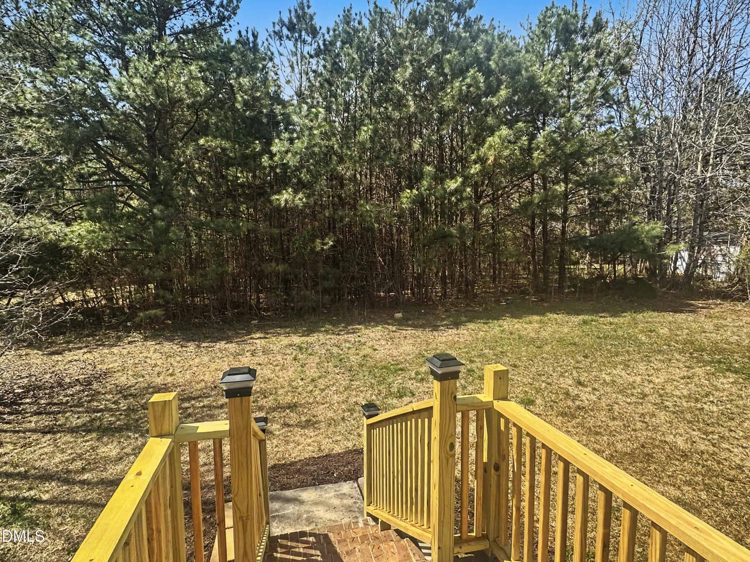 Step outside to enjoy the back porch overlooking a private backyard, offering a great space for relaxing or entertaining.