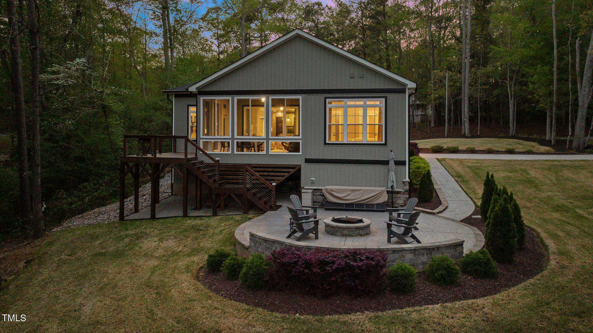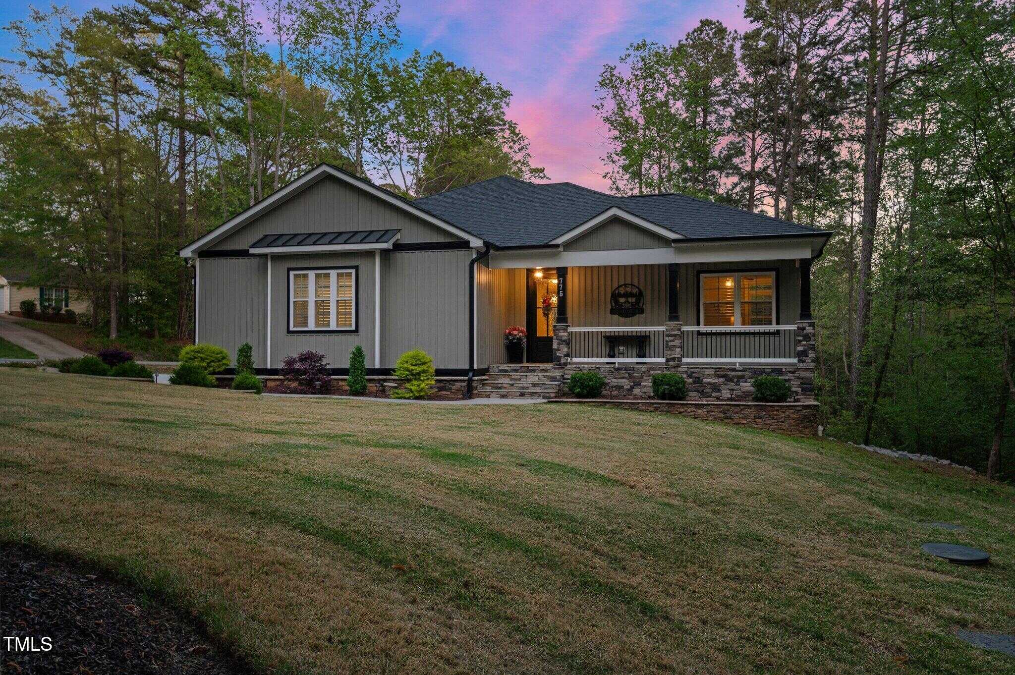 Discover lake living at its finest in this fully custom Craftsman-style Waterfront retreat, perfectly positioned on 0.83 meticulously maintained acres with private water access and breathtaking panoramic views. Located in a gated, resort-style lake community, this extraordinary home combines timeless design with upscale functionality. Step inside to find true one-level living with quality 2×6 construction and an open-concept layout designed for comfort, elegance, and flow. The heart of the home is a beautifully appointed kitchen featuring high-end KitchenAid appliances, custom cabinetry, and a large center island perfect for gathering. A thoughtfully placed laundry room with Miele washer and dryer adds to the everyday convenience. The home offers three spacious bedrooms and two full baths, all finished with upscale Craftsman-style detailing that elevates every corner. The three-season room is a showstopper—framed in natural light and offering uninterrupted views of the lake, with a walk out open deck, it’s the perfect space to unwind year-round. Outdoors, you’ll find an incredible hardscape entertainment area complete with a built-in fire pit—ideal for evening gatherings under the stars. With your very own boat slip, enjoying life on the water has never been easier. This meticulous home also features a walk-in sealed crawl space, a whole home generator, a water purification system, an oversized two car garage with epoxy floors, and ample storage areas throughout. From the expertly maintained landscape with an irrigation system, to the high-end finishes throughout, this home is a rare opportunity to own a slice of paradise with every detail thoughtfully curated for lakeside living.