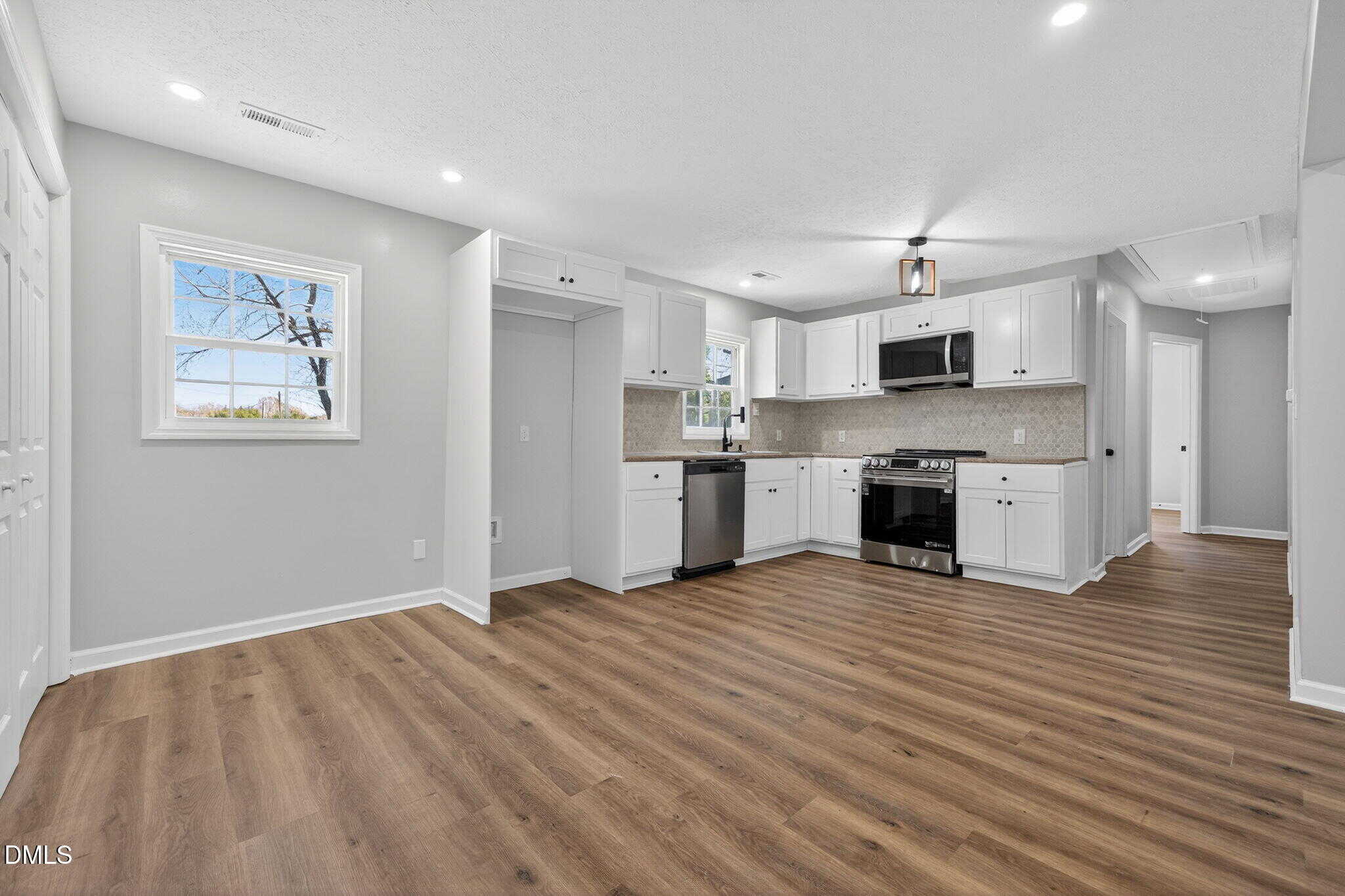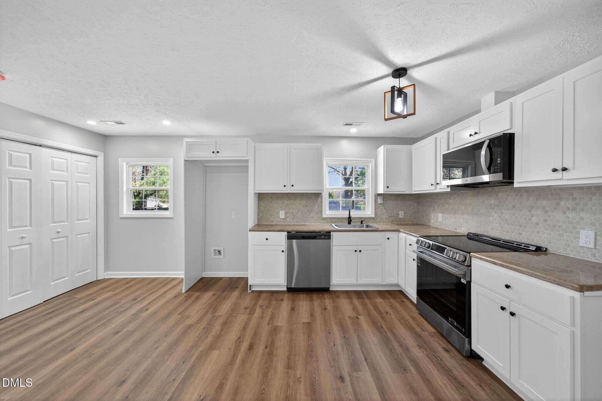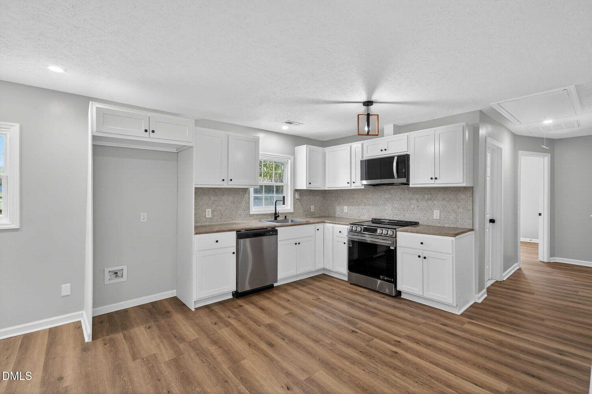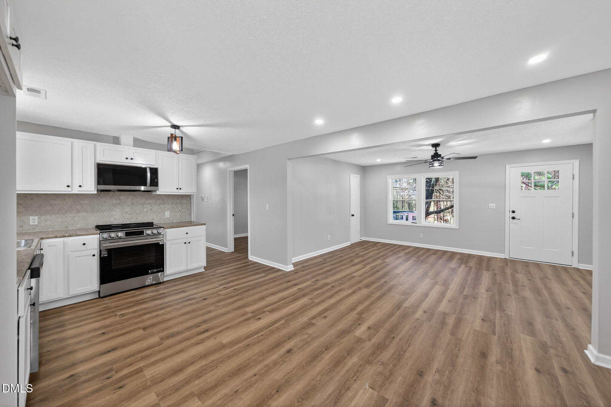 Welcome to this beautifully renovated home located at 785 East River Rd in Louisburg! This move-in ready property features stylish LVP flooring throughout, complemented by modern fixtures and updated appliances that bring a fresh, contemporary feel to every space. The bathroom has been thoughtfully upgraded with a tiled bathtub, offering both comfort and a touch of luxury. The spacious primary suite includes a large walk-in closet with built-in storage, providing both convenience and organization. Enjoy plenty of outdoor space with a generous front and backyard–perfect for relaxing, entertaining, or everyday living. Ideally situated just minutes from downtown Louisburg and local shopping, this home offers the perfect blend of modern updates and everyday convenience. Don’t miss the opportunity to make this beautifully updated property your next home!