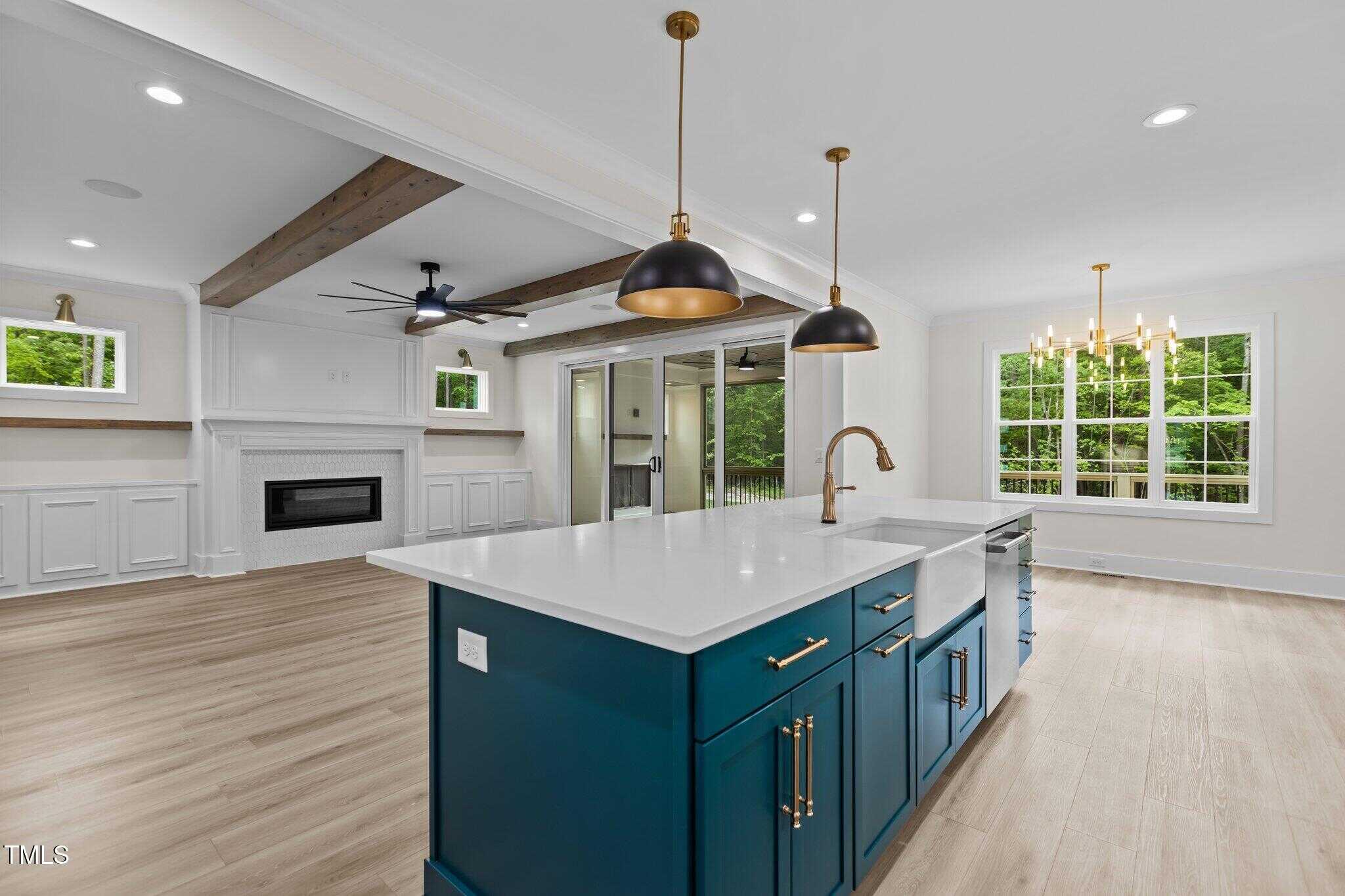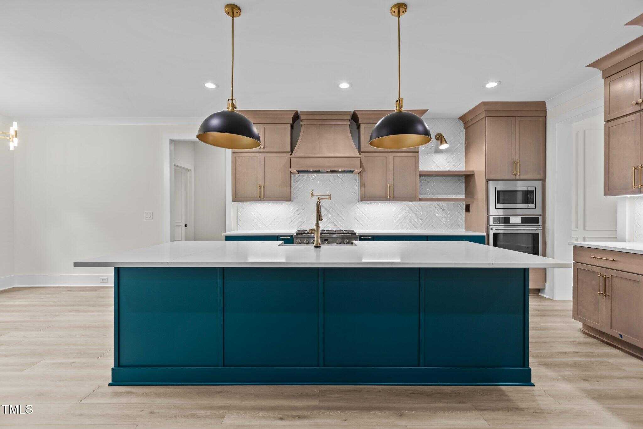 Kitchen: Custom Painted Cabinets,Large Center Island w/ Breakfast Bar & Accent Pendant Lights, Oversized Walk in Pantry!