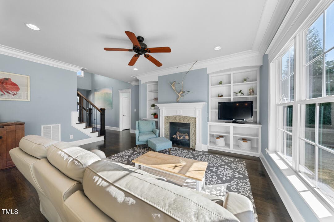 9′ ceilings 1st & 2nd; Faux wood shutters; updated light fixtures; ceiling fans; interior designer paints; updated granite in master; walk-in pantry; seamless gutters; walk-in storage. 3 car garage.