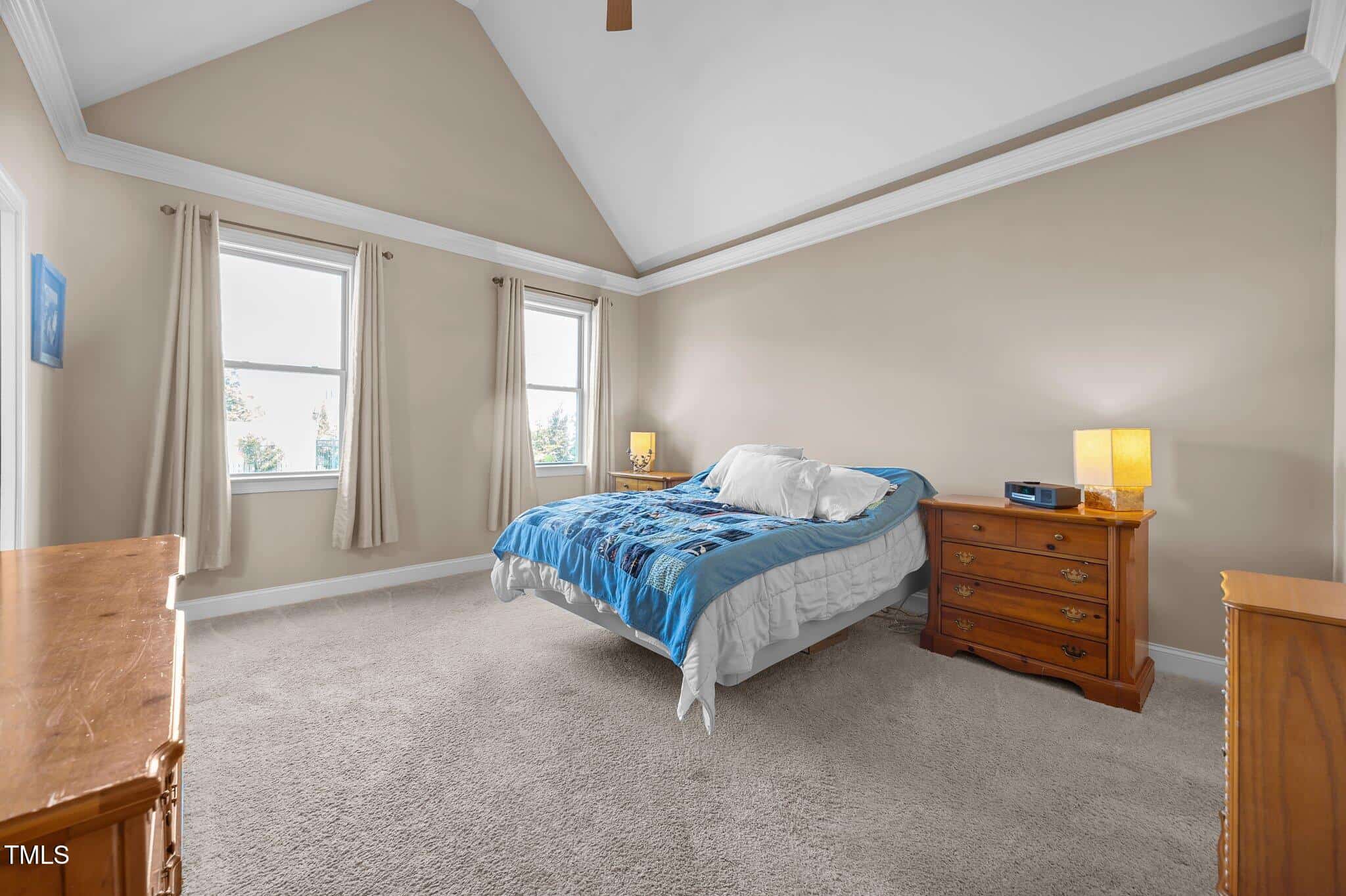 Luxuriate in the primary bedroom with a stunning vaulted ceiling and indulgent ensuite with an oversized walk-in shower, double vanity with granite countertops, and separate water closet.