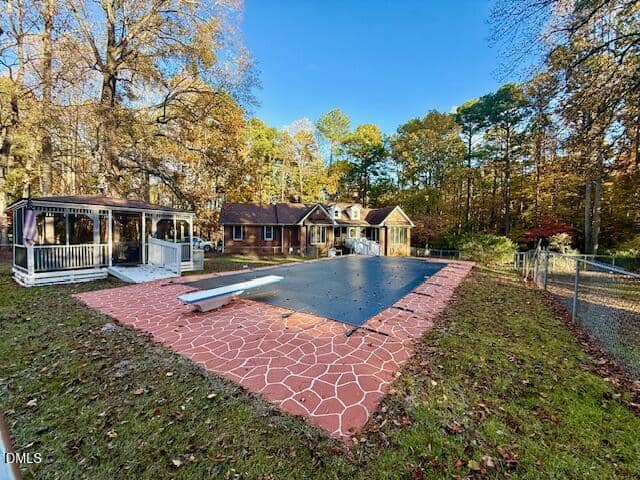 KERR LAKE WATER FRONT RANCH w/ FINISHED WALK OUT BASEMENT for a Total of over 3500 SF on 1.99 Acres (3 Lots)! Attached 2 Car Garage + Massive 36×35 DETACHED GARAGE with one side sunken floor and grease pit+ Attached 16×10 BOAT / CARPORT w/ lots of room to work on CARS & BOATS! IN-GROUND POOL w/ surrounding Tiled Patio Pavers + screened GAZEBO. HANDICAP RAMP from Pool to Front Porch. NOT PERMITTED to have Private Boat Dock but can rent slip in neighboring STEELE CREEK MARINA.