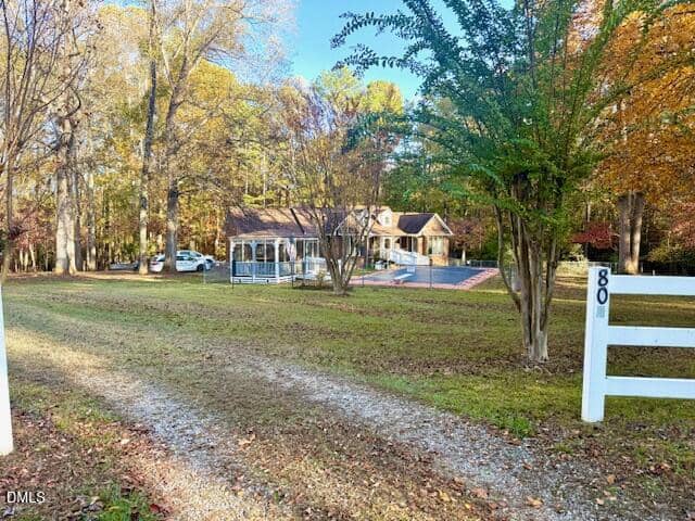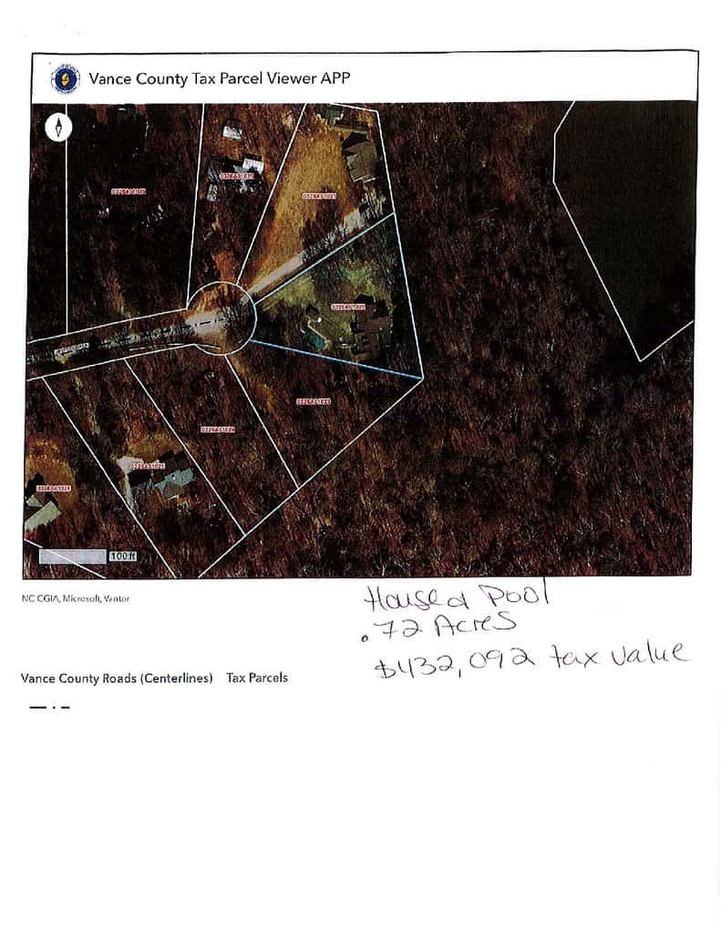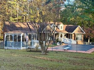 KERR LAKE WATER FRONT RANCH w/ FINISHED WALK OUT BASEMENT for a Total of over 3500 SF on 1.99 Acres (3 Lots)! Attached 2 Car Garage + Massive 36×35 DETACHED GARAGE with one side sunken floor and grease pit+ Attached 16×10 BOAT / CARPORT w/ lots of room to work on CARS & BOATS! IN-GROUND POOL w/ surrounding Tiled Patio Pavers + screened GAZEBO. HANDICAP RAMP from Pool to Front Porch. NOT PERMITTED to have Private Boat Dock but can rent slip in neighboring STEELE CREEK MARINA. 3 BRs on Main Level + Family Room w/ FP, Heated Sunroom w/ Vaulted Ceilings & Skylights, Primary BR opens to Screen Porch. Gally Kitchen + Breakfast Area & Separate DR. Walk out BASEMENT has over 1800 SF including a 34×20 Heated REC Room & Additional 21×12 Finished Rec Room but Unheated which opens to the outside. Seller in process of installing LVP Flooring in 2 BRs, New linoleum in Kitchen, Painting all areas that are wall papered, Great Room & Front Bedroom. Also attached Storage area. $515,000 +$5000 CC & HBW at asking price. $120 Road Maintenance Yearly Fee for Taylor’s Pointe Gravel Rd. NO HOA FEES. Community Gym can be used for a Fee. KERR LAKE has 800 miles of Shoreline ! Home In Townsville but Henderson address