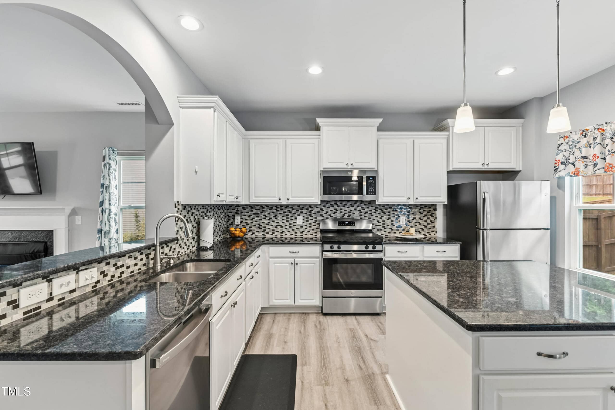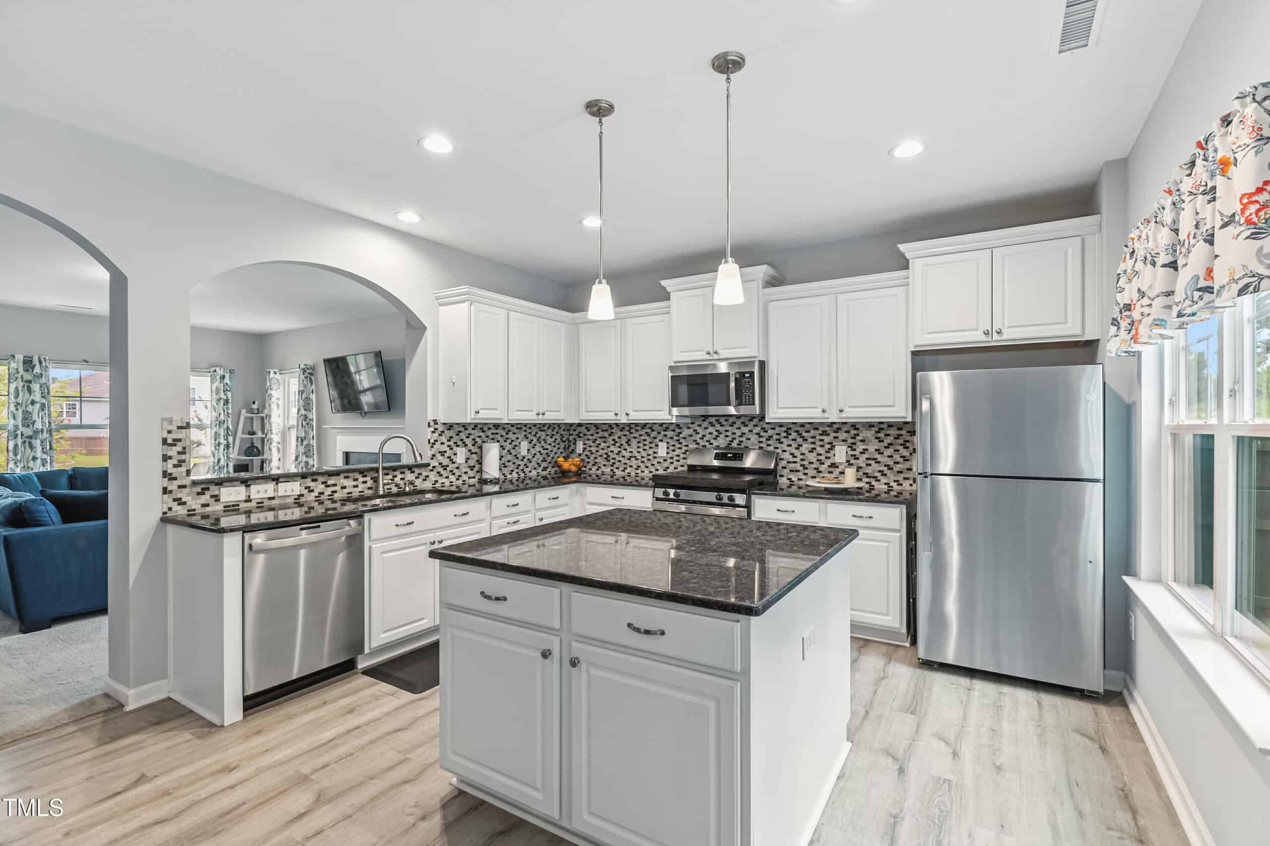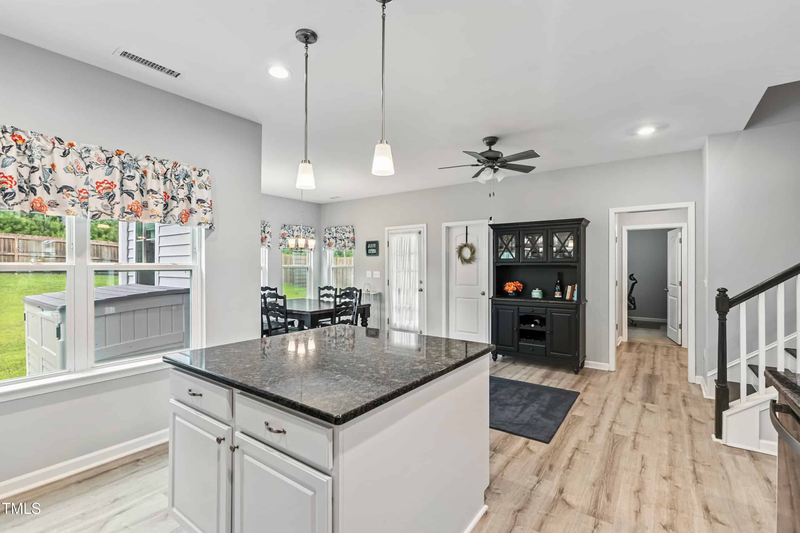 Step inside to an open-concept main floor with durable luxury vinyl plank flooring, abundant natural light, and a large kitchen featuring granite countertops, stainless steel appliances, a walk-in pantry, and an oversized island perfect for entertaining. The kitchen flows into the dining area and living room, creating a seamless space for everyday living.