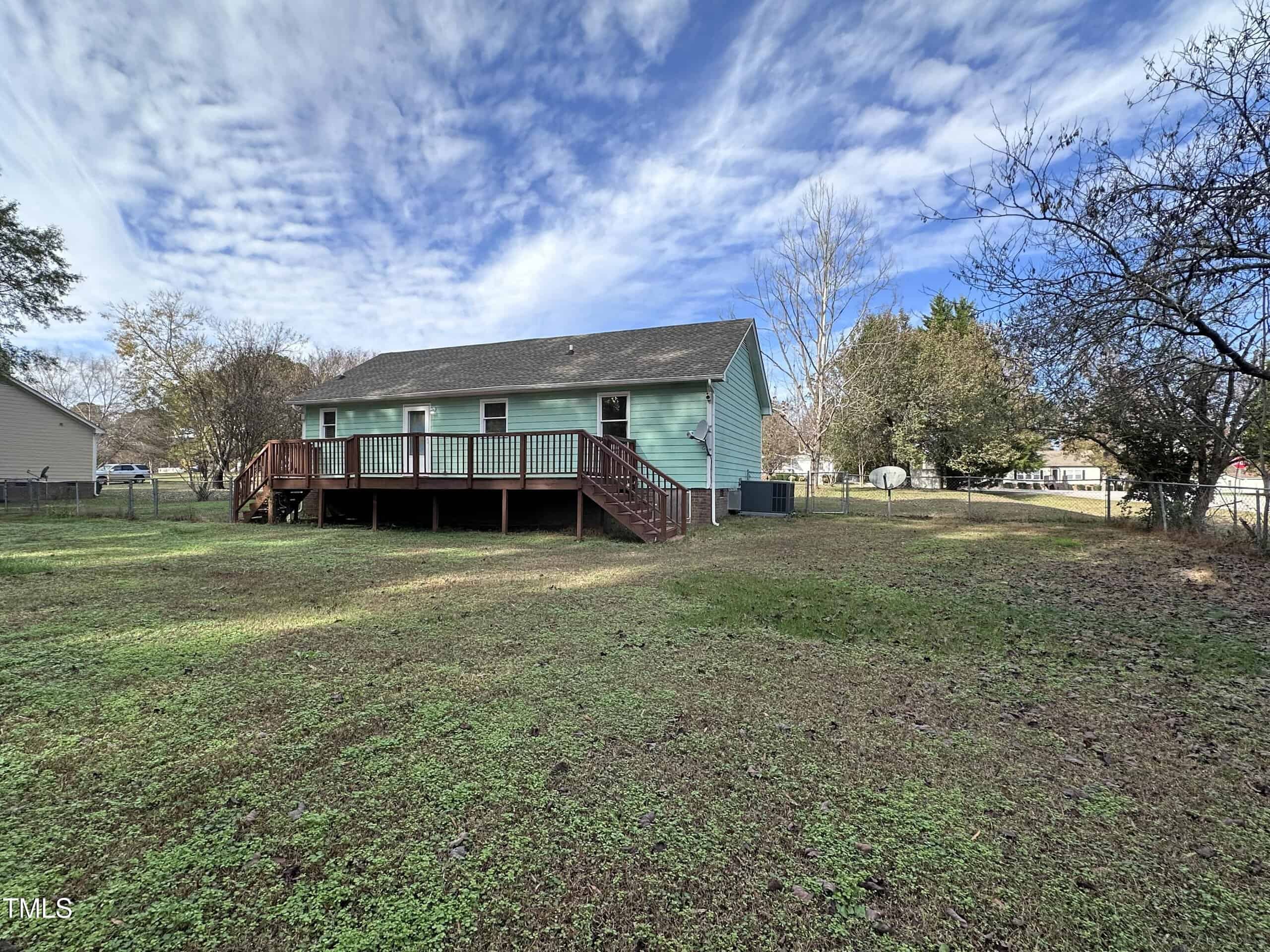 Welcome to this charming 3-bedroom, 2-bathroom ranch-style home situated on a spacious corner lot. With a large, flat yard and a huge, recently replaced deck, this property is perfect for outdoor gatherings or simply enjoying some quiet time in a serene setting. The fenced-in backyard provides privacy and security, ideal for lots of play! Inside, you’ll find an abundance of natural light that flows throughout the spacious living room and eat in kitchen, enhancing the warm, inviting atmosphere. The home features numerous updates, including a newer roof and HVAC system, new well pump and water heater, giving you peace of mind and years of low-maintenance living. Perfect distance to Louisburg, Youngsville, Wake Forest or Raleigh. Whether you’re relaxing inside or entertaining on the deck, this home offers a perfect blend of comfort, convenience, and style.
