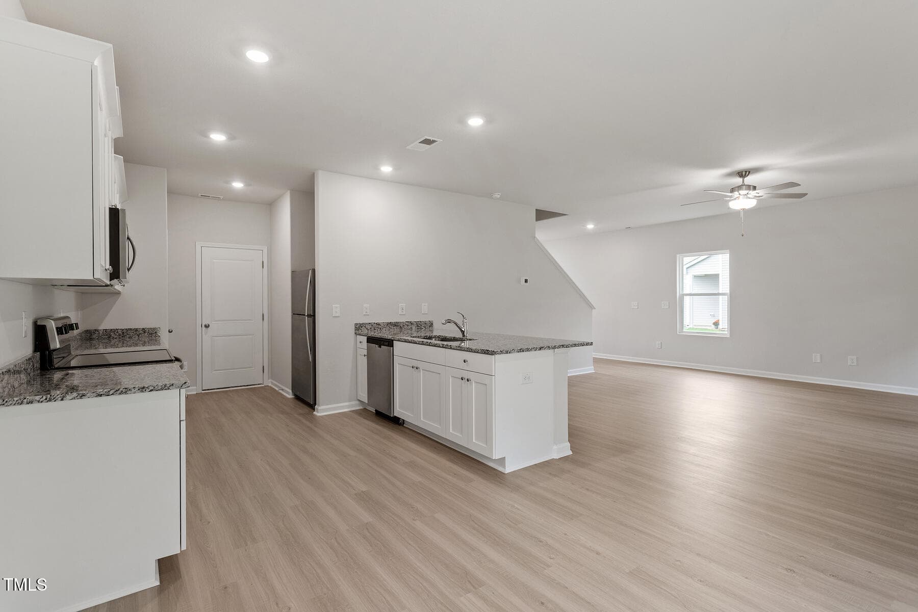 The first floor of this 3-bedroom home showcases a large living room with a cozy dining area and a gorgeous kitchen. Each of the generously sized bedrooms are located on the second level, along with a conveniently placed laundry room. Luxury vinyl-plank flooring, energy-efficient appliances, wood cabinetry with crown molding, designer lighting and a two-tone paint scheme are just a few of the many exciting features you will find in this home – all at no extra cost to you!