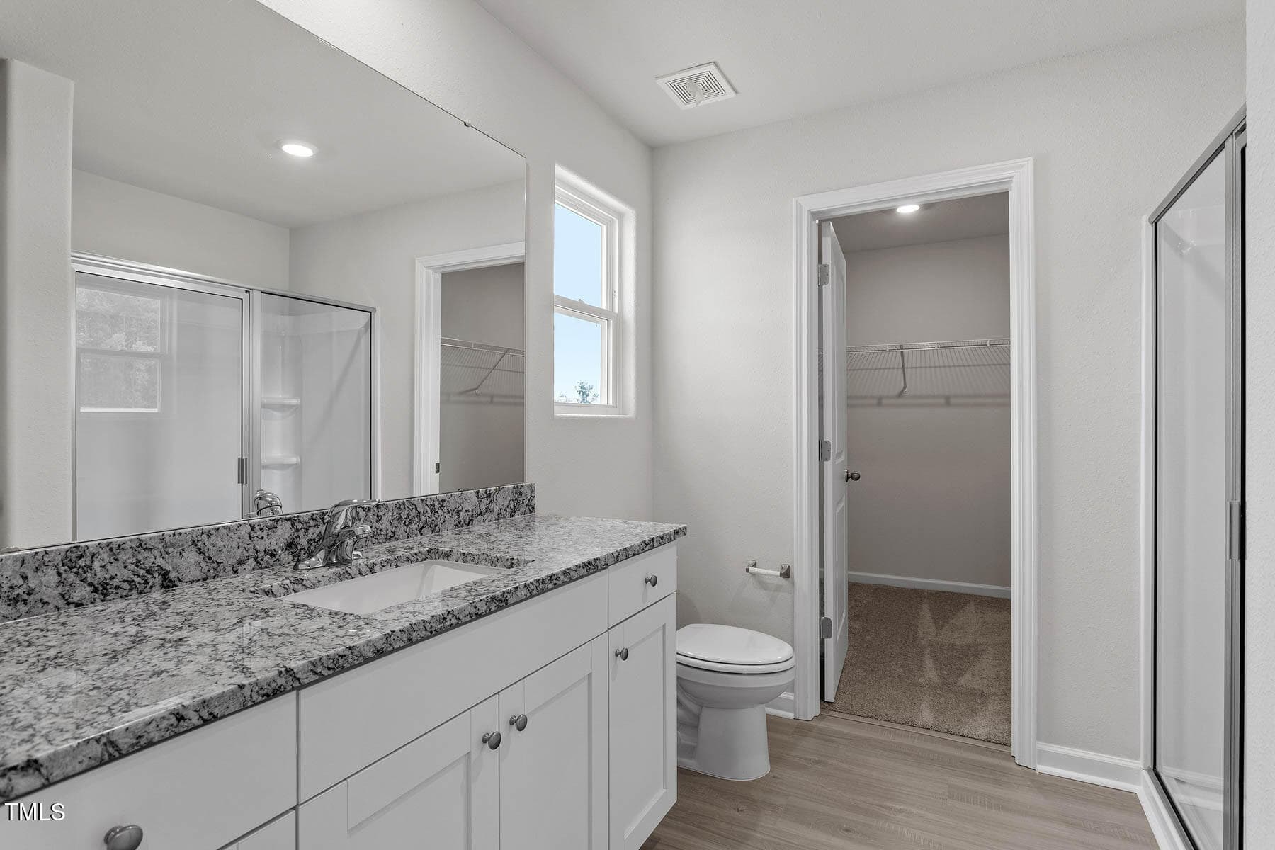 The master is tucked away on the second floor of the home with plenty of natural light and a fabulous master bath. In the master bath you will find a large vanity, great storage and an impressive walk-in closet.