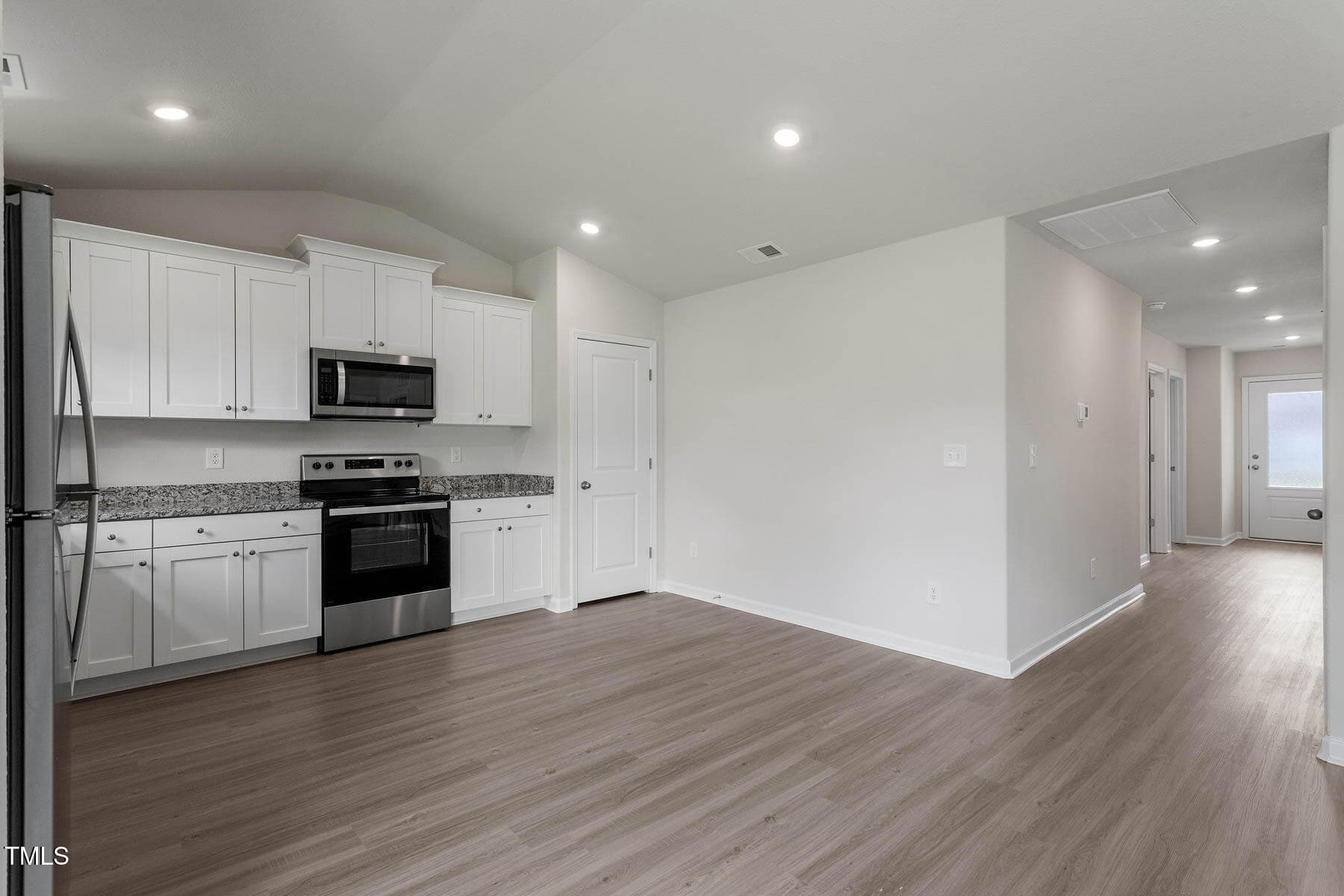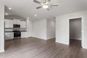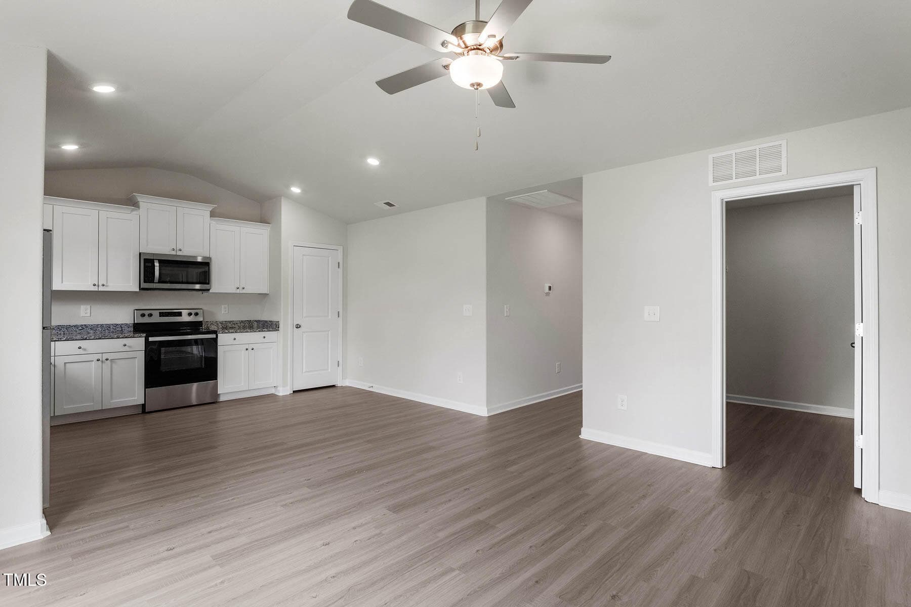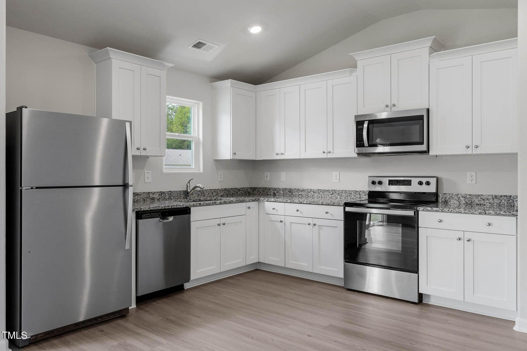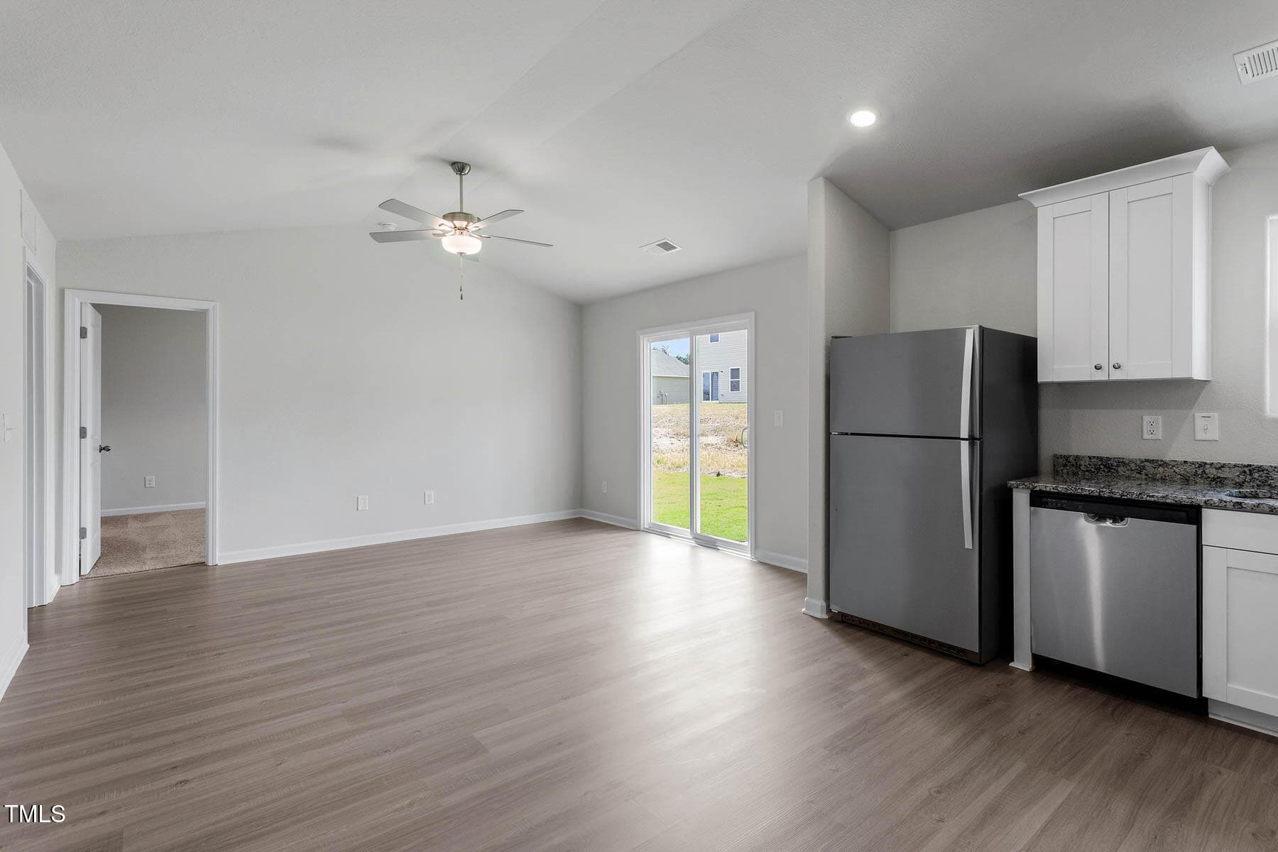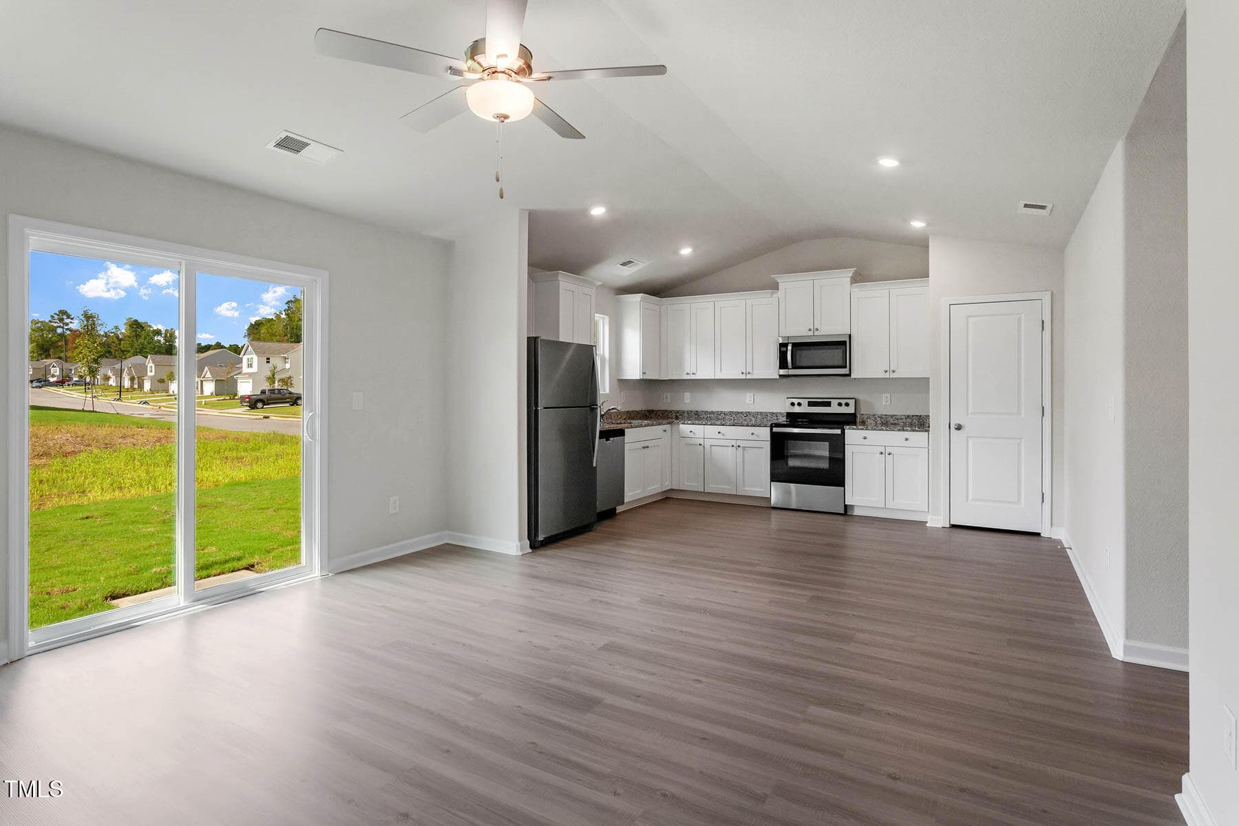 This 3-bedroom ranch has an appealing layout with a large living room that opens to the kitchen and dining area. The sliding glass door in the living room offers views of the private back yard. This home includes luxurious upgrades at no added cost. A full suite of energy-efficient stainless-steel Whirlpool® kitchen appliances, incredible granite countertops, 36” upper wood cabinets with crown molding and a Wi-Fi enabled garage door opener are just a few of the modern upgrades that come standard.