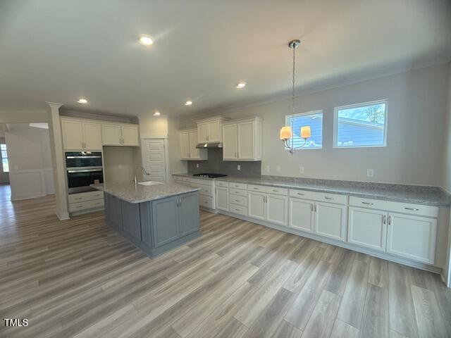 The designer kitchen is a true centerpiece, showcasing level 4 granite countertops, a large island, farmhouse sink, and extended cabinetry into the breakfast area. It opens into a bright and airy living space, perfect for entertaining. A beautiful sunroom at the rear of the home provides peaceful views of your private wooded backyard.