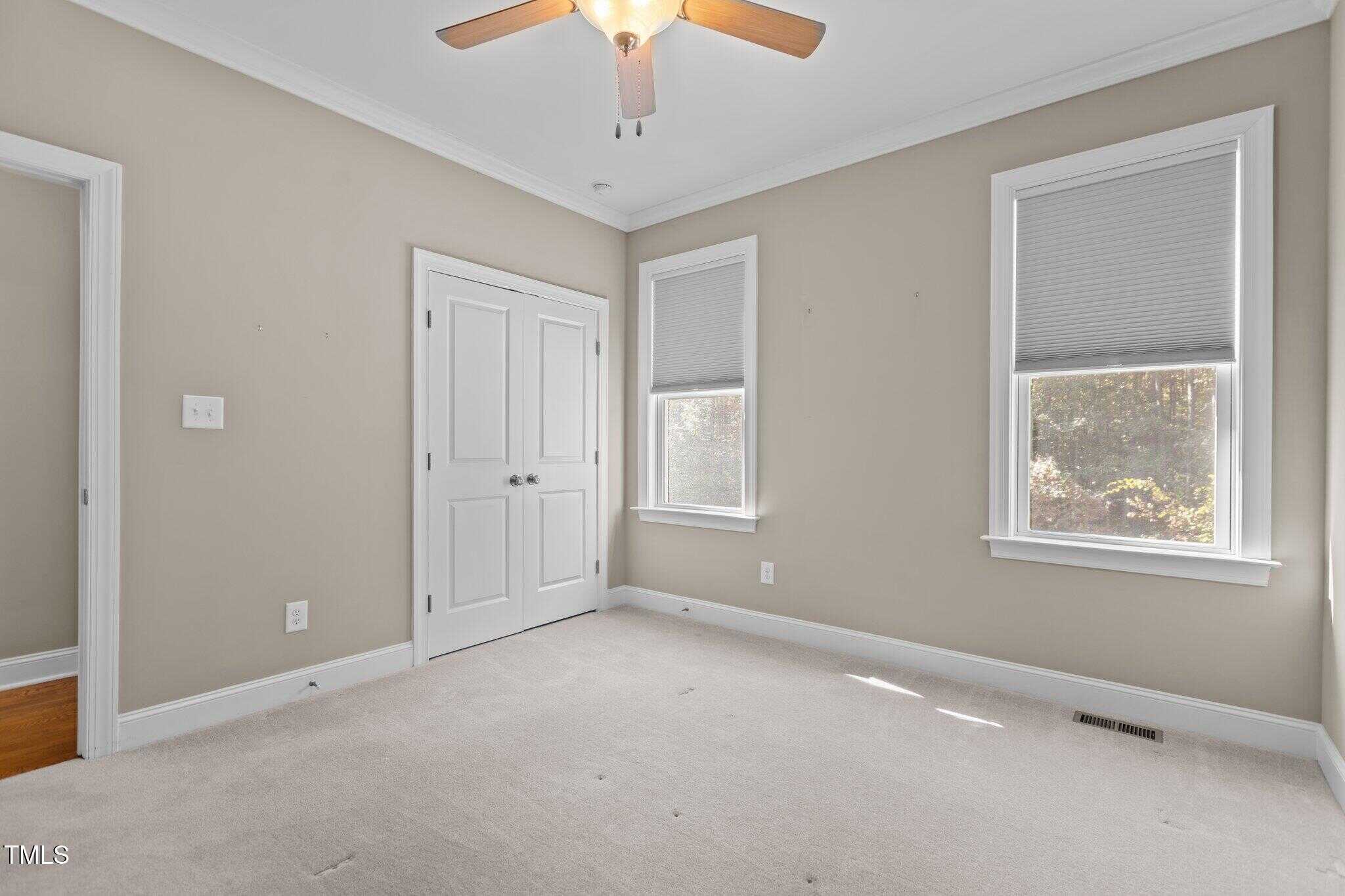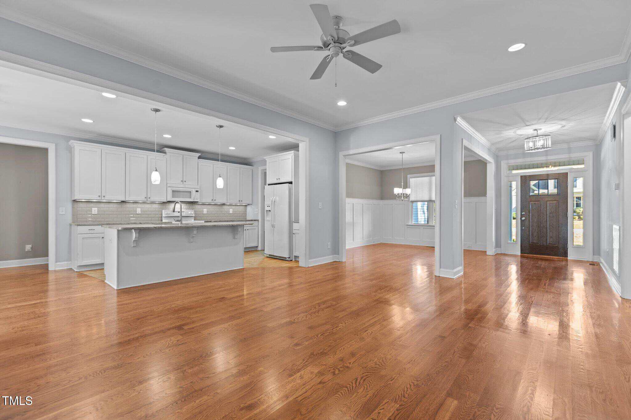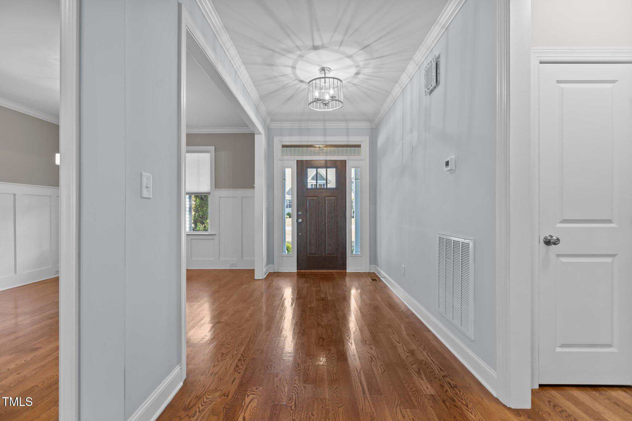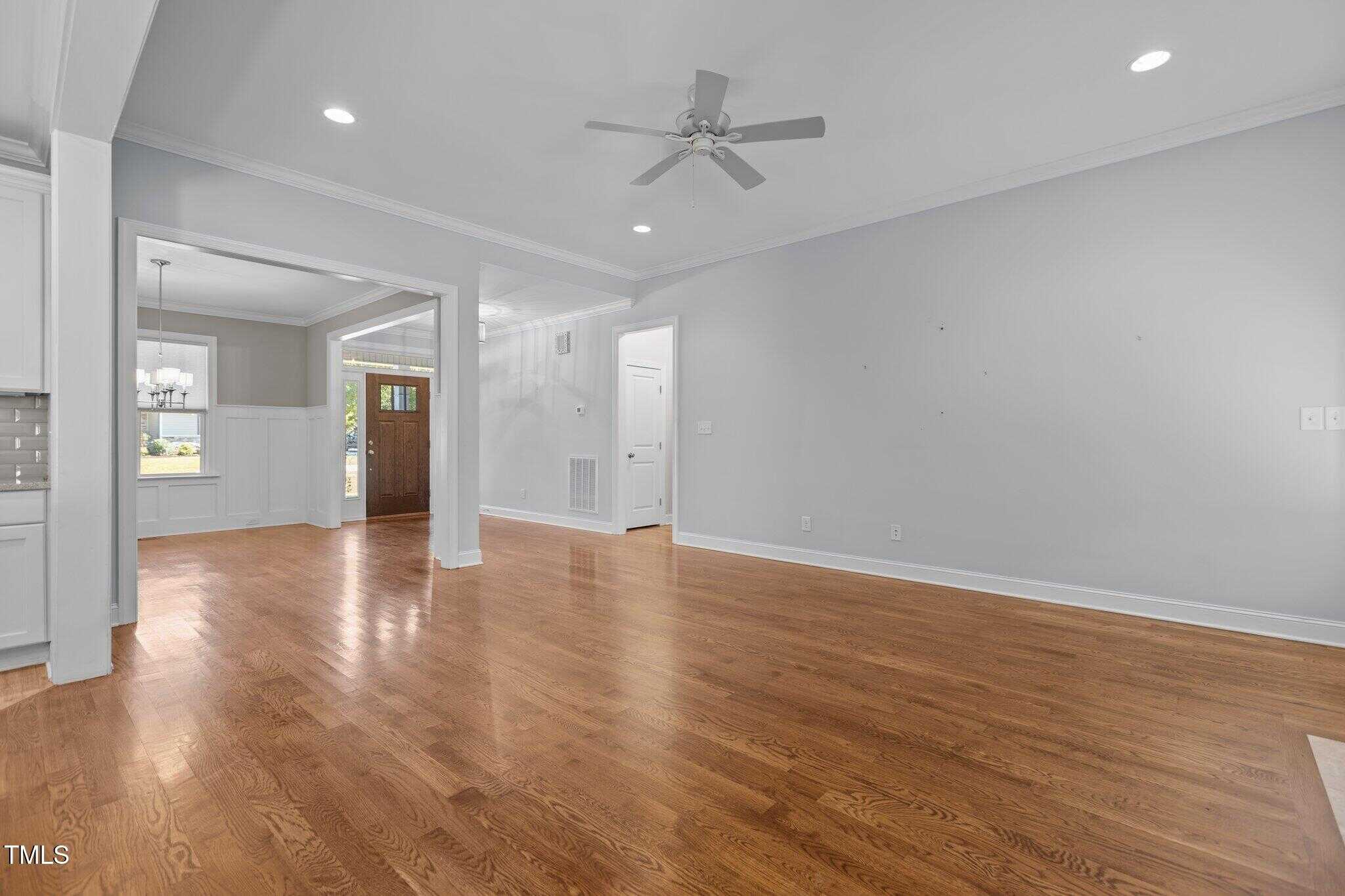 Welcome to your dream ranch-style living home in Youngsville, NC! This stunning property boasts 4 spacious bedrooms and 3 well-appointed bathrooms, perfect for comfortable living and entertaining. As you step inside, you’ll be greeted by hardwood floors that flow throughout the first floor and up the stairs, adding warmth and elegance to the space. The open-concept living area features 9-foot ceilings, creating an airy atmosphere filled with natural light. Enjoy culinary delights in the modern kitchen equipped with custom cabinetry, and entertain with ease in the adjoining dining and living spaces. The home also features custom wood shelving in the closets, maximizing storage while enhancing the overall aesthetic. The covered back porch has custom blinds. One of the standout features is the huge walk-out attic, offering endless possibilities—convert it into a playroom, office, or additional storage. Located in a peaceful neighborhood, you’ll enjoy the tranquility of suburban life while being just a short drive from local amenities. Don’t miss this opportunity to own a beautiful, well-appointed ranch-style home that combines style, comfort, and functionality. Schedule your showing today!