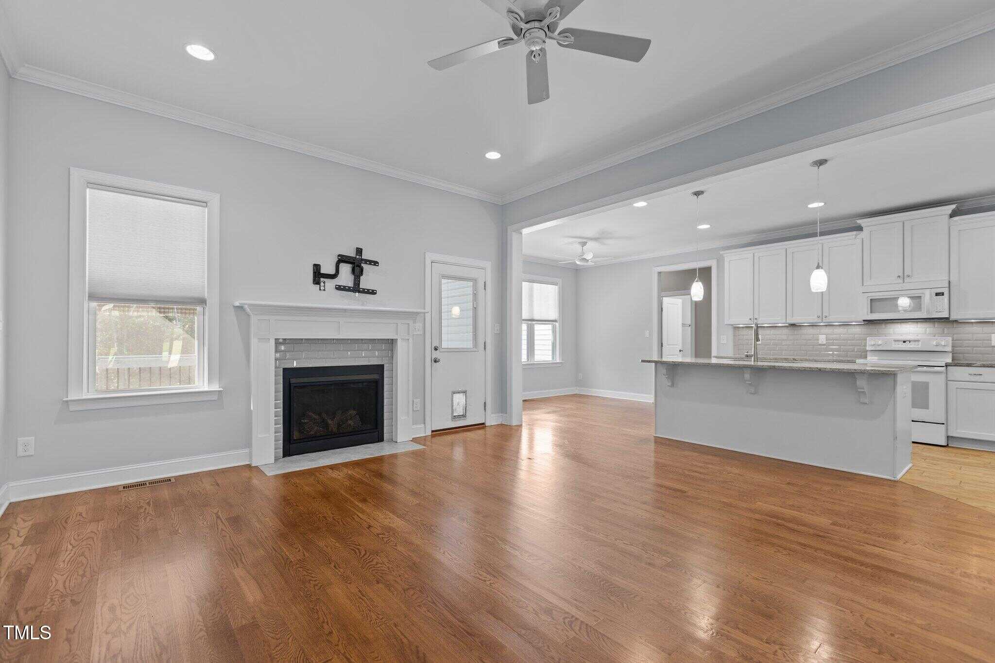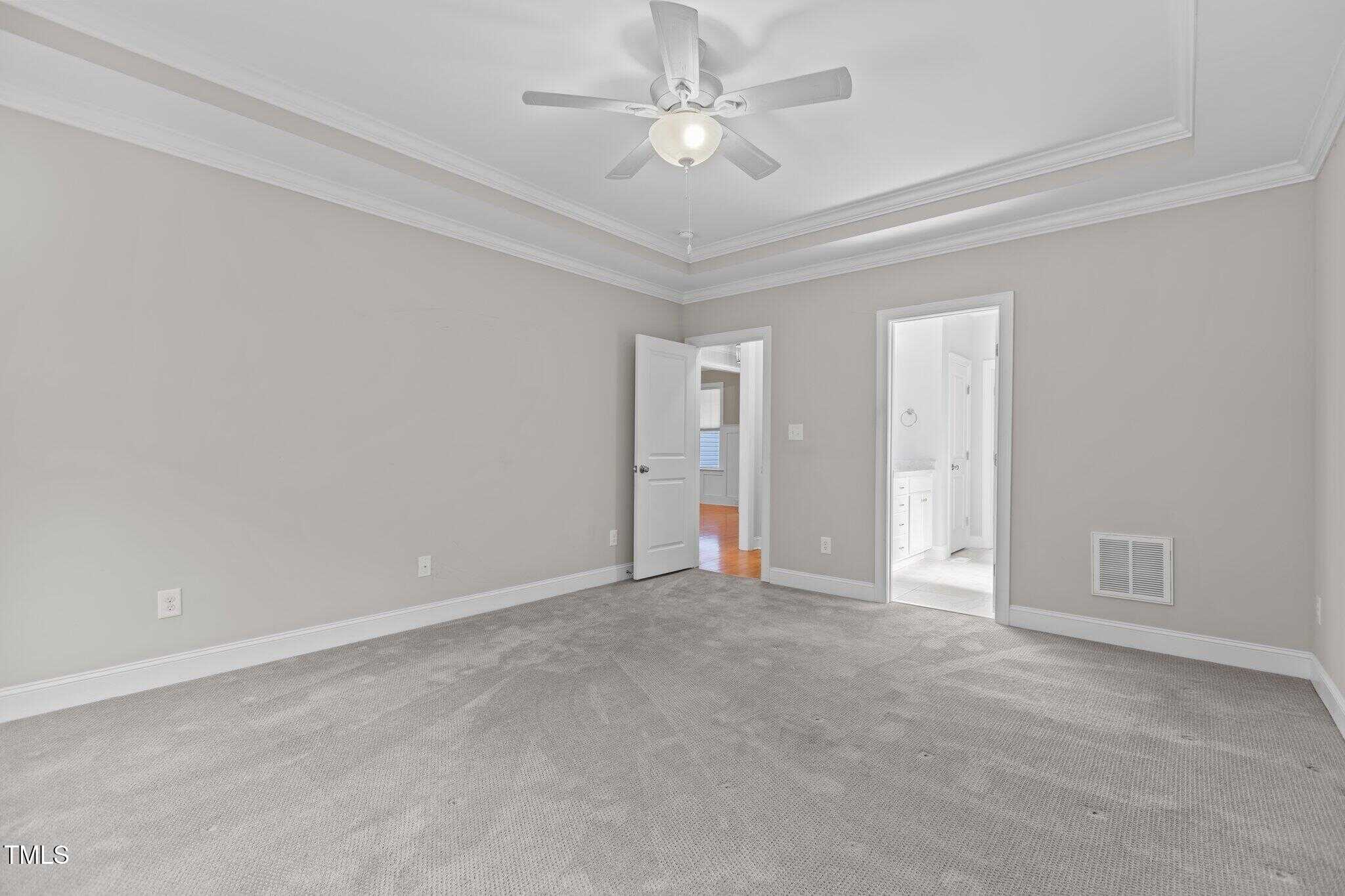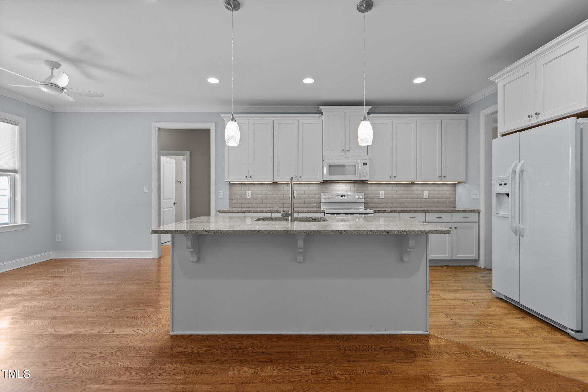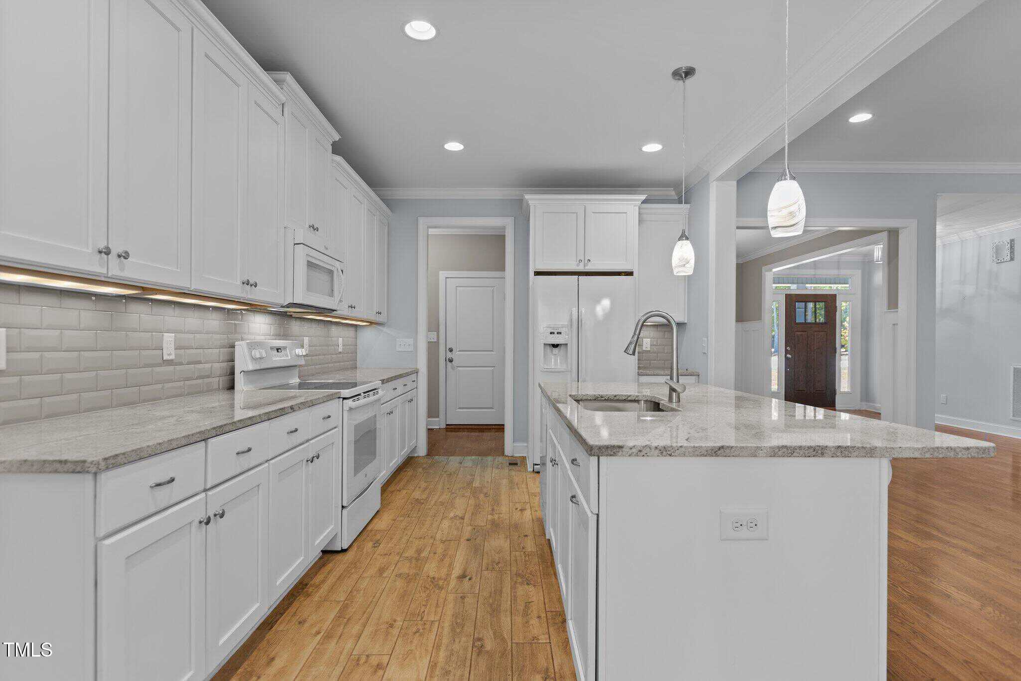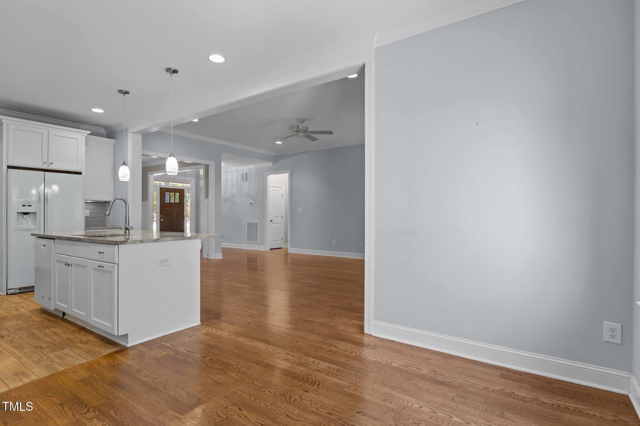 Welcome to your dream ranch-style living home in Youngsville, NC! This stunning property boasts 4 spacious bedrooms and 3 well-appointed bathrooms, perfect for comfortable living and entertaining. As you step inside, you’ll be greeted by hardwood floors that flow throughout the first floor and up the stairs, adding warmth and elegance to the space. The open-concept living area features 9-foot ceilings, creating an airy atmosphere filled with natural light. Enjoy culinary delights in the modern kitchen equipped with custom cabinetry, and entertain with ease in the adjoining dining and living spaces. The home also features custom wood shelving in the closets, maximizing storage while enhancing the overall aesthetic. The covered back porch has custom blinds. One of the standout features is the huge walk-out attic, offering endless possibilities—convert it into a playroom, office, or additional storage. Located in a peaceful neighborhood, you’ll enjoy the tranquility of suburban life while being just a short drive from local amenities. Don’t miss this opportunity to own a beautiful, well-appointed ranch-style home that combines style, comfort, and functionality. Schedule your showing today!