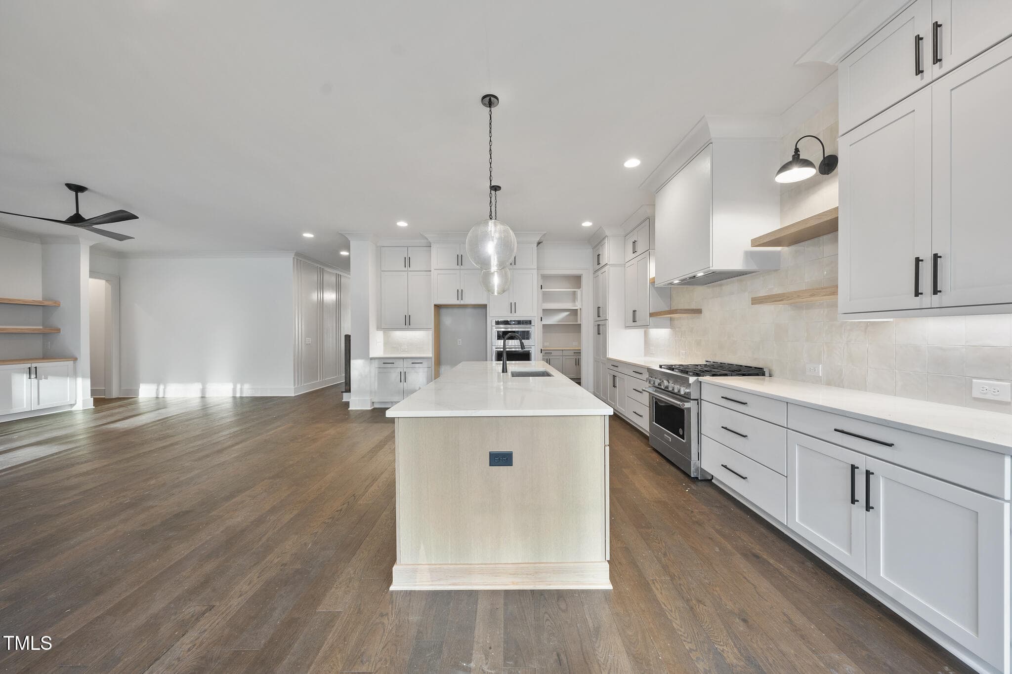 PRIVATE POOL ACCOMMODATING LOT! Main Level Primary Suite, Guest Suite & 3 Car Garage! Gourmet Kitchen: features Large Center Island w/Designer Pendants, Gourmet SS Appls Incl Gas Range & Double Oven, Custom Cabinets to Ceiling & Oversized Walk in Pantry. Opens to Vaulted Dining w/Accent Beams!