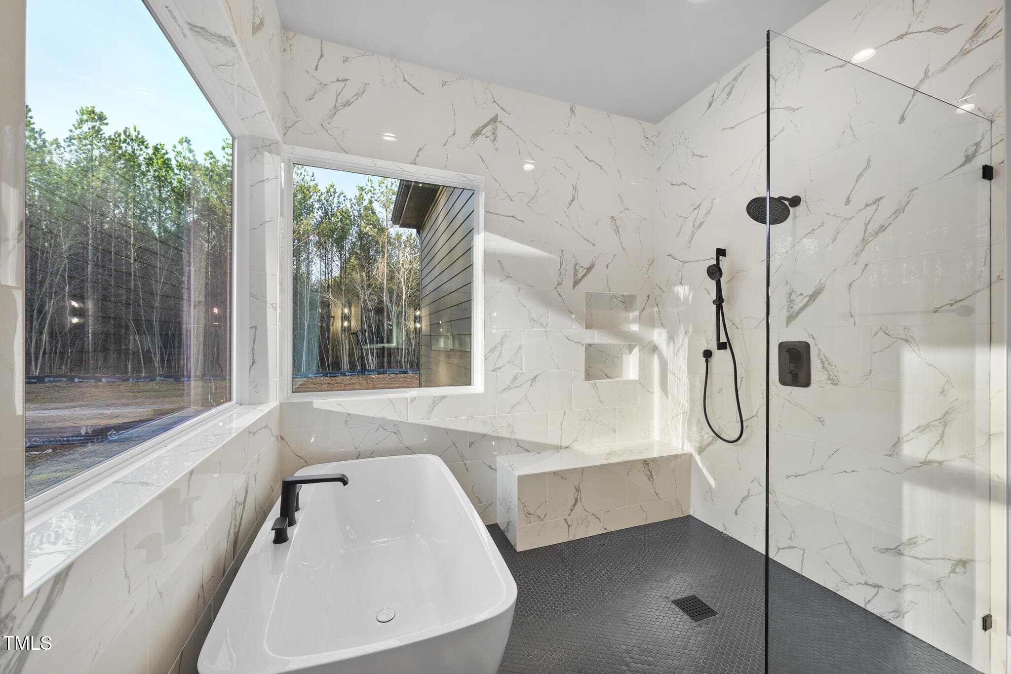 Vaulted Primary Suite: offers HWDs & Private Access to Screened Porch! Luxury Primary Bath: w/Spa Style Shower w/Zero Entry & Bench Seat, Freestanding Tub & WIC w/Direct Laundry Access!