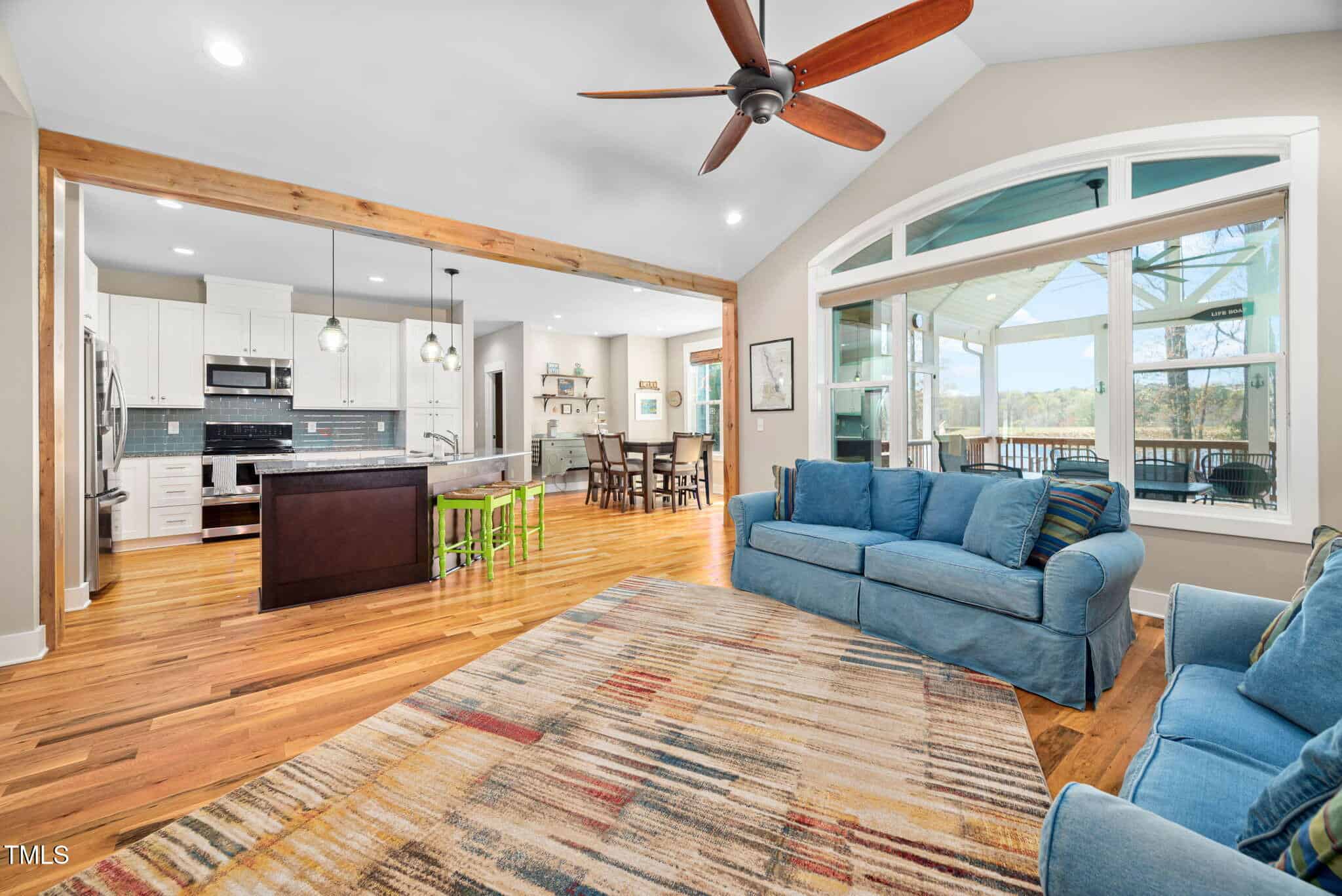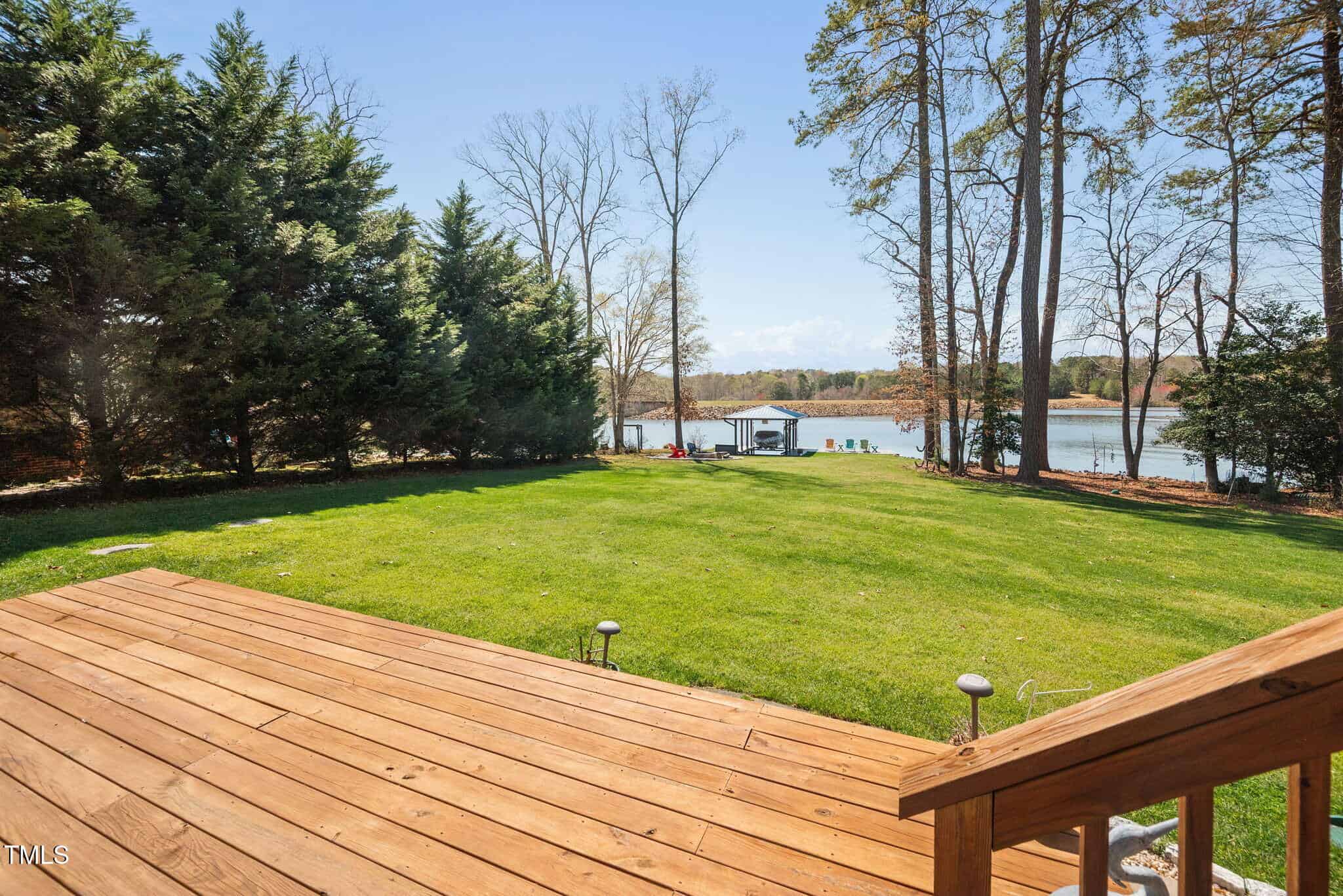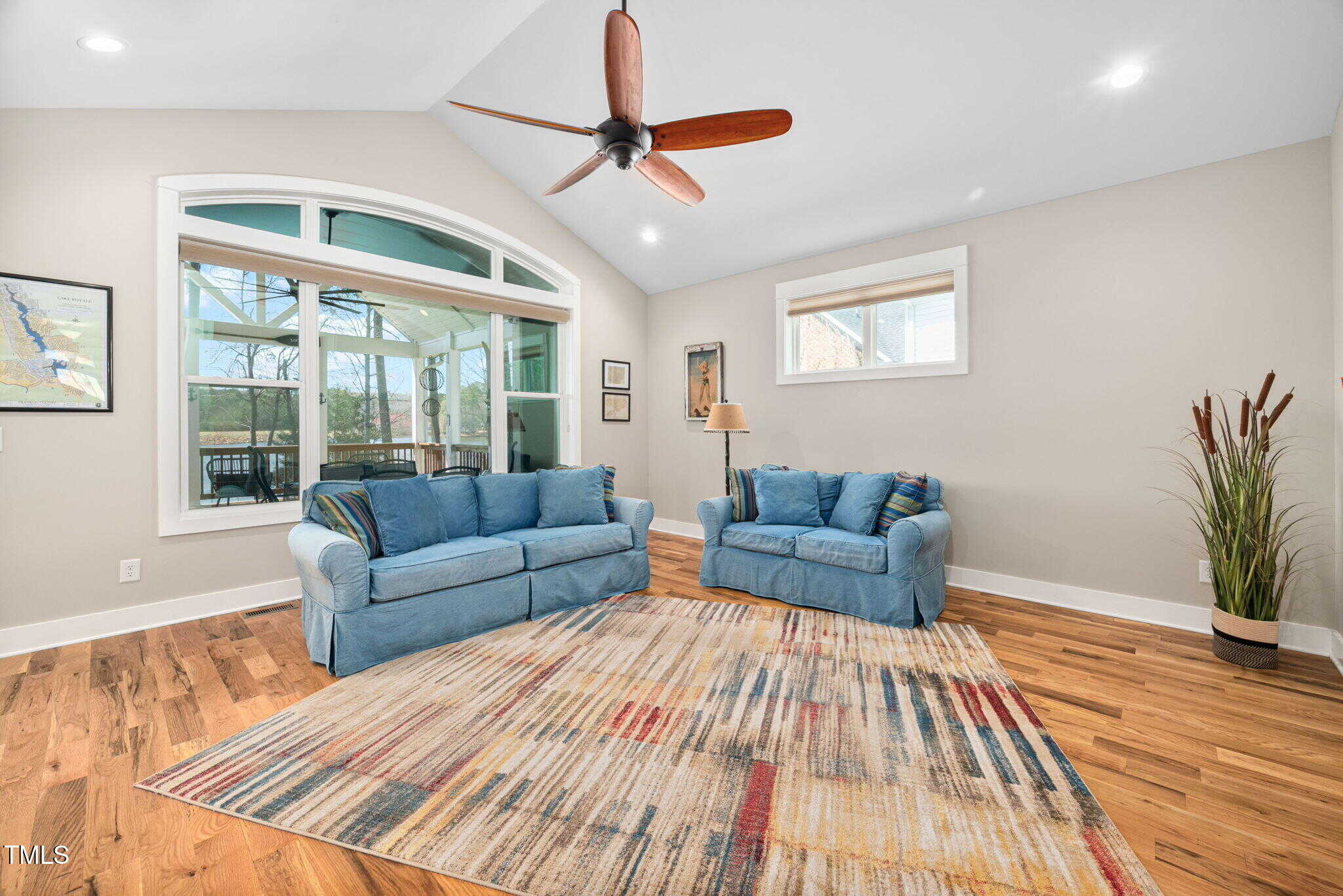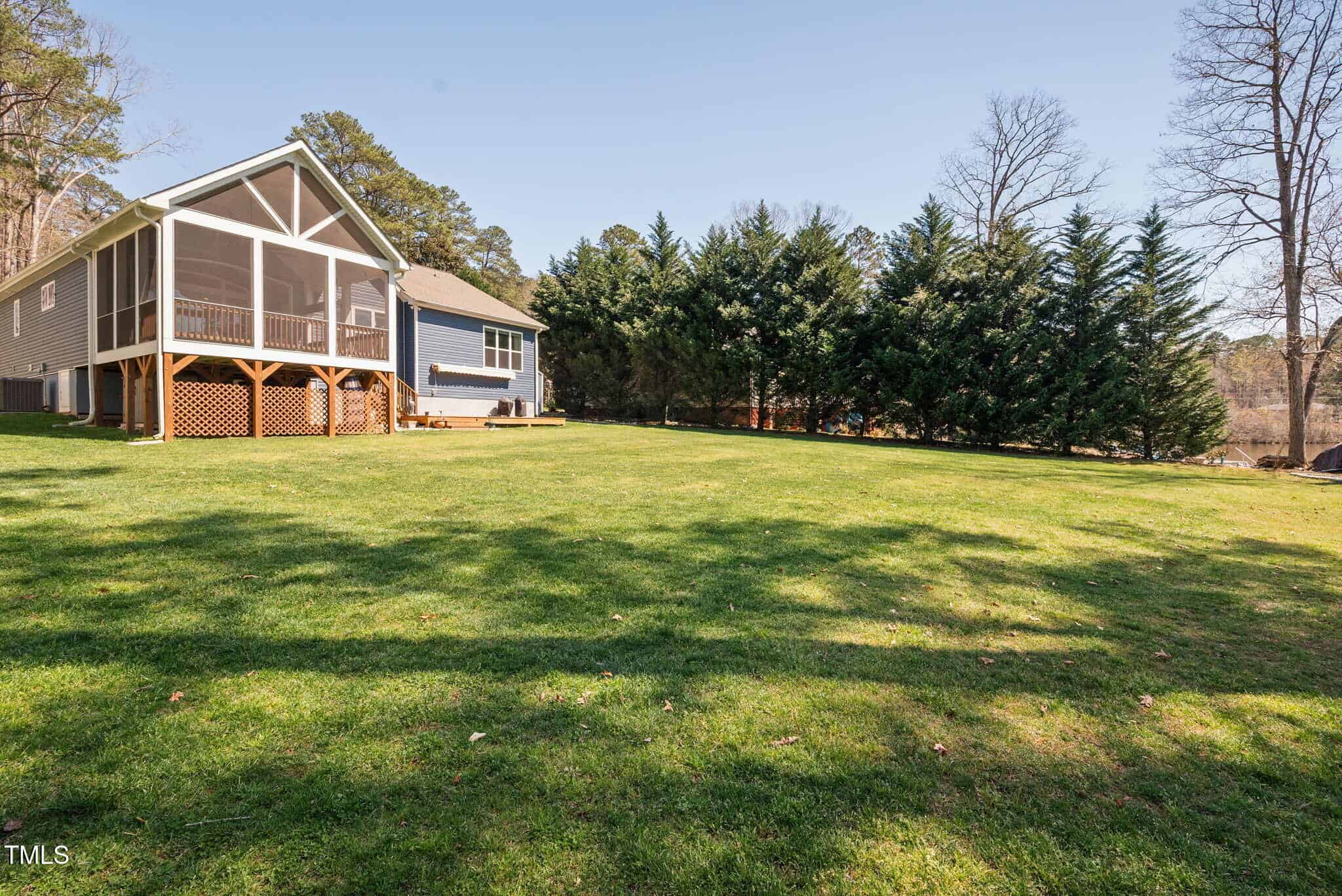 Inviting Outdoor Spaces: Cozy up by the outdoor fireplace or relax in the expansive, screened-in porch (installed in 2022) with panoramic views of the lake. Additional deck space with an automatic awning offers shade and comfort on sunny days.