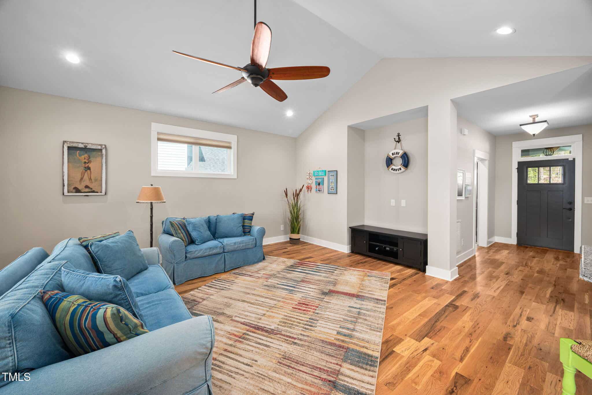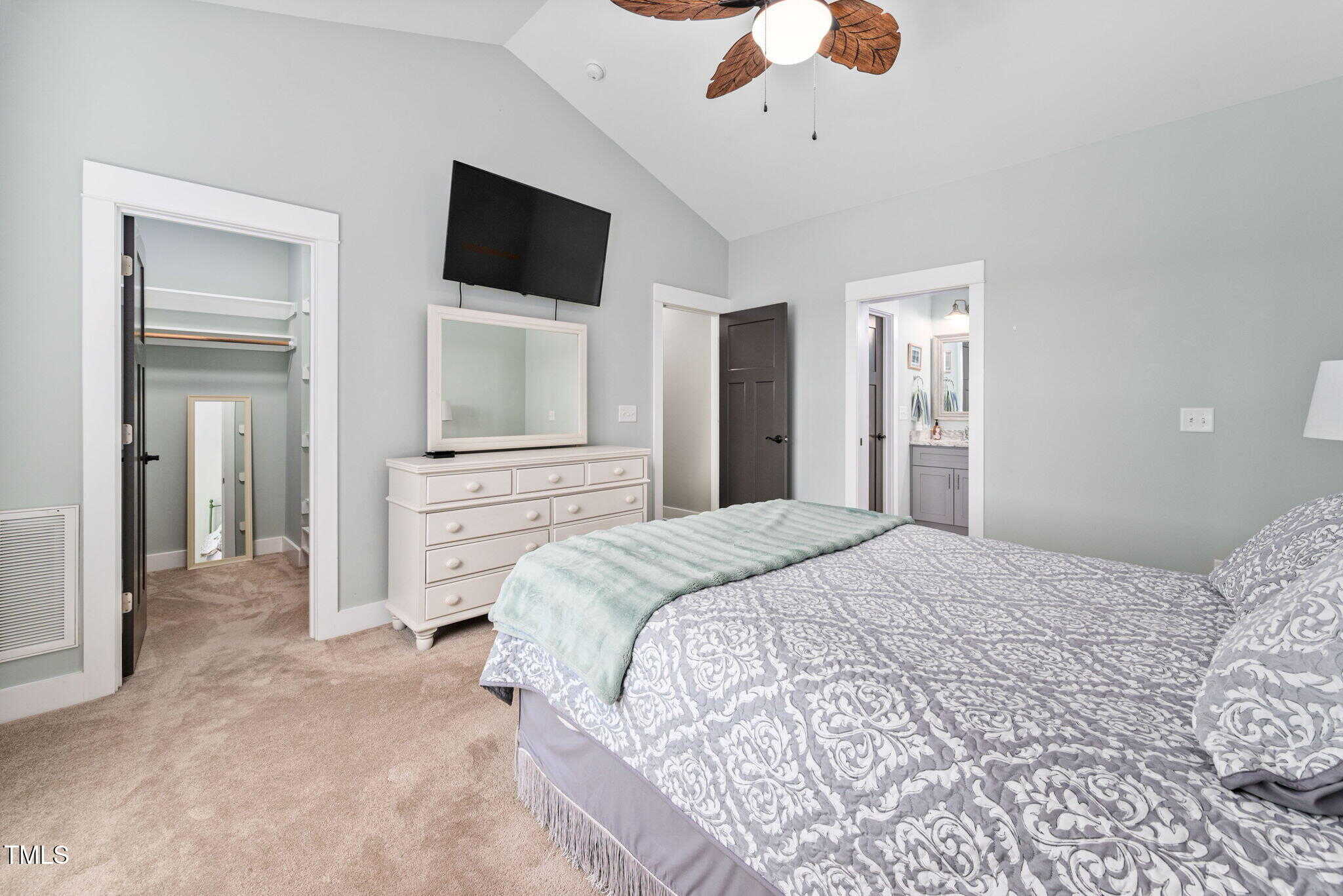 Soaring Ceilings: Enjoy the spaciousness with a stunning cathedral ceiling in the primary bedroom and living room.