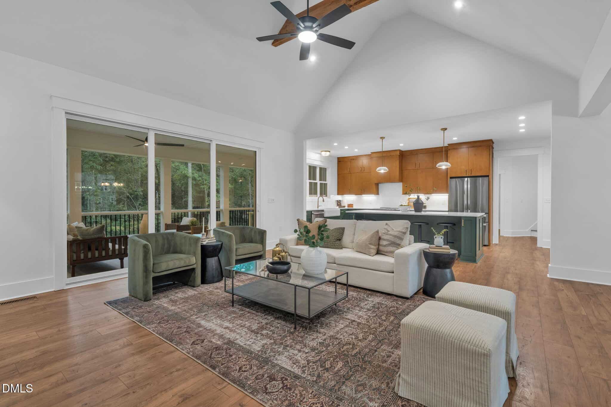 2025 Parade of Homes Gold Winner! Crisp lines meet cozy charm in this modern farmhouse dream by H&W Custom Builders. A covered front porch with natural wood columns and a sleek metal roof offers the perfect spot to start or end your day. Inside, a vaulted family room with wood beam accents and a striking fireplace anchors the open-concept living space. The designer kitchen features a center island and a walk-through scullery for added prep and storage, while the formal dining room is ideal for entertaining. The private owner’s suite includes a tray ceiling, spa-inspired bath, and a spacious walk-in closet with direct access to the laundry room. Two additional main-level bedrooms share a well-designed buddy bath. Upstairs, another large bedroom with full bath provides flexible space for guests, work, or play. Enjoy wooded privacy from the screened back porch, plus a 2-car garage with built-in storage. This home offers timeless style and everyday functionality in perfect balance.