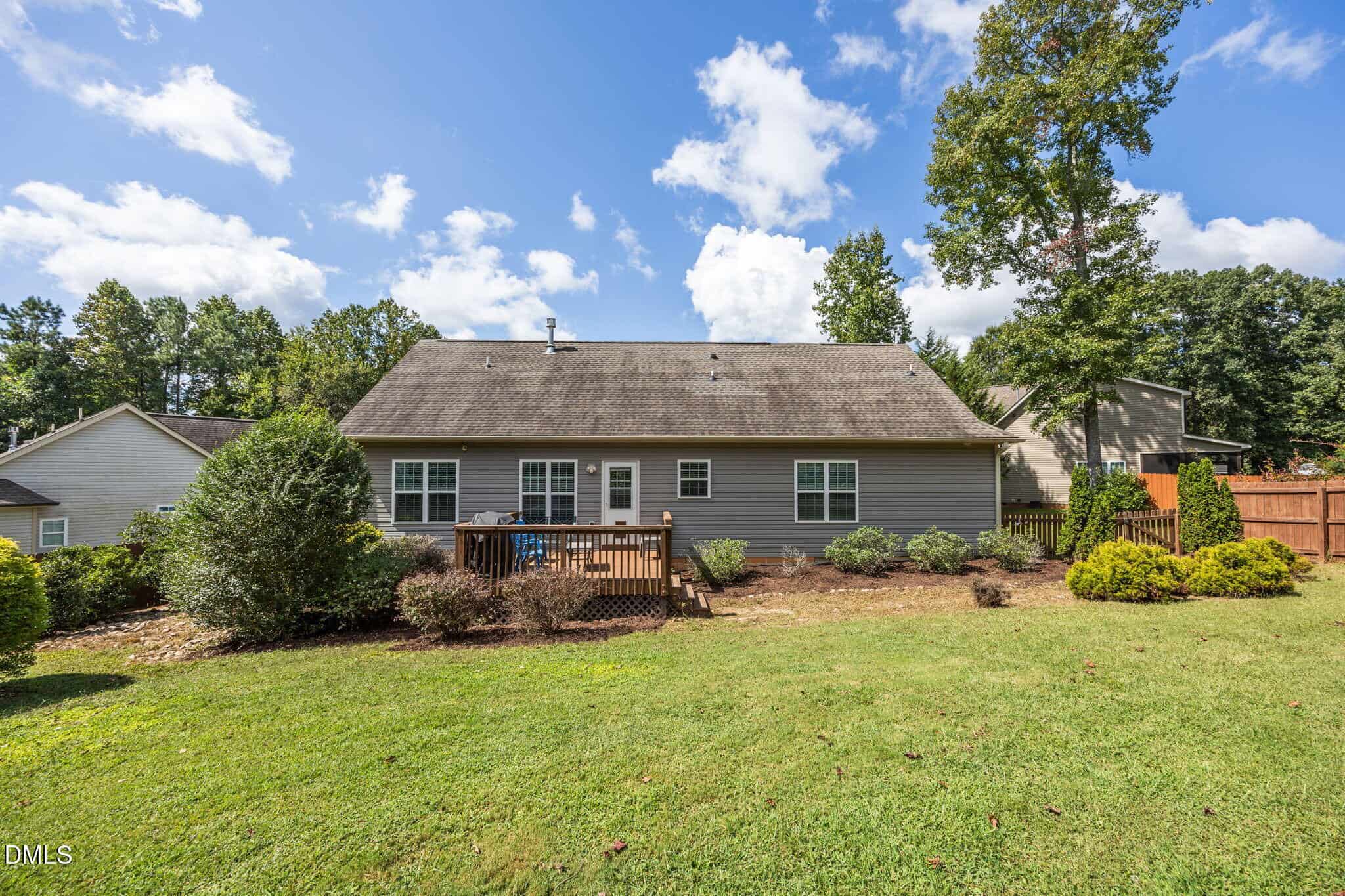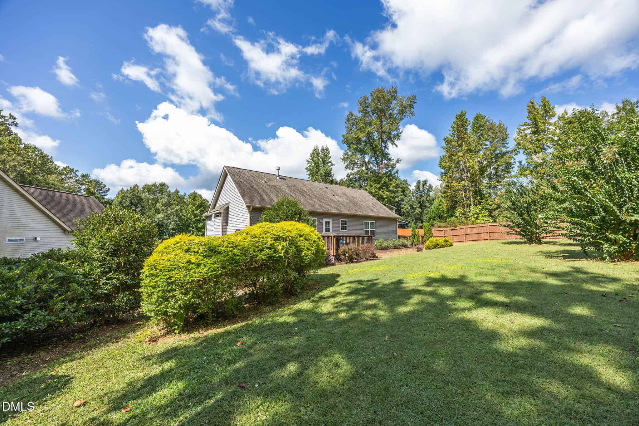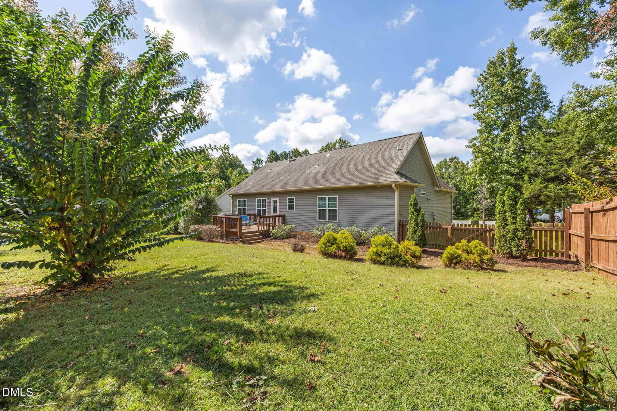 The primary suite provides a relaxing retreat with a walk-in closet and a spa-inspired tiled shower with a built-in bench. Additional highlights include ceramic tile floors in the bathrooms, a generous laundry room, and a two-car garage. Outside, enjoy the deck overlooking the lushly landscaped yard that includes a gardening shed. With the convenience of public water, natural gas, USDA eligibility, and easy access to Youngsville, Wake Forest, and RTP, this home perfectly blends everyday comfort with timeless style.